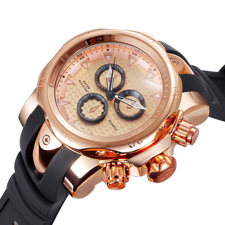 2016 Golden Luxury Watch Rubber Sports Watch Fashion Casual Quartz Men Wristwatch Clock Hours saat Relogio Masculino