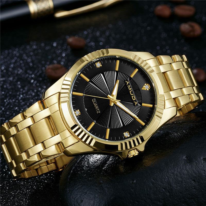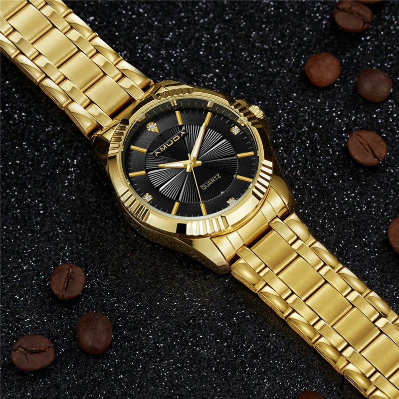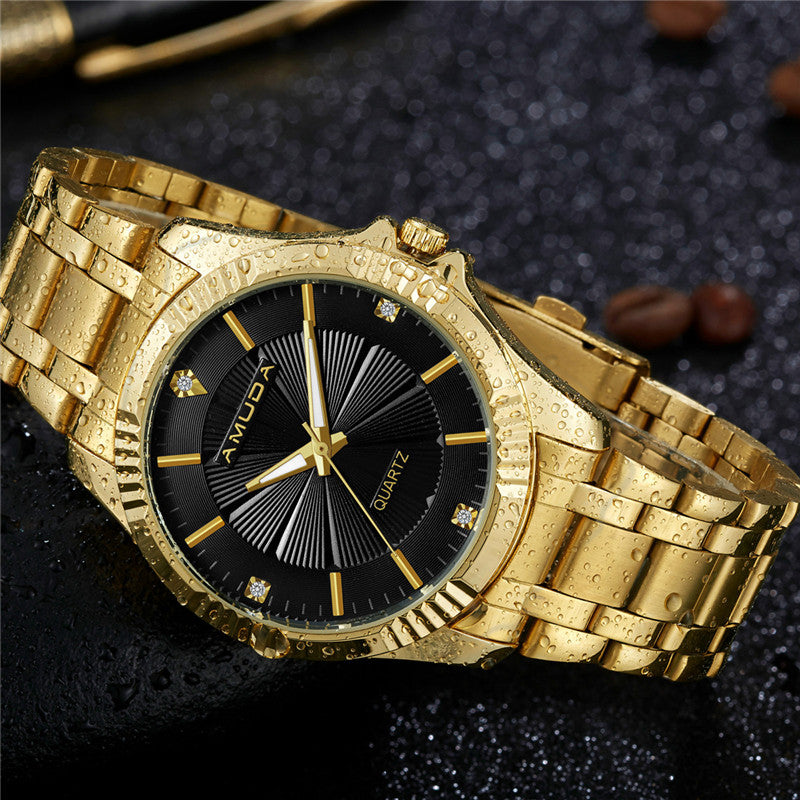 2017 Golden Men Watch Brand Luxury Full Steel Business Wristwatch Men's Rhinestone Quartz Wrist Watch Relogio Masculino