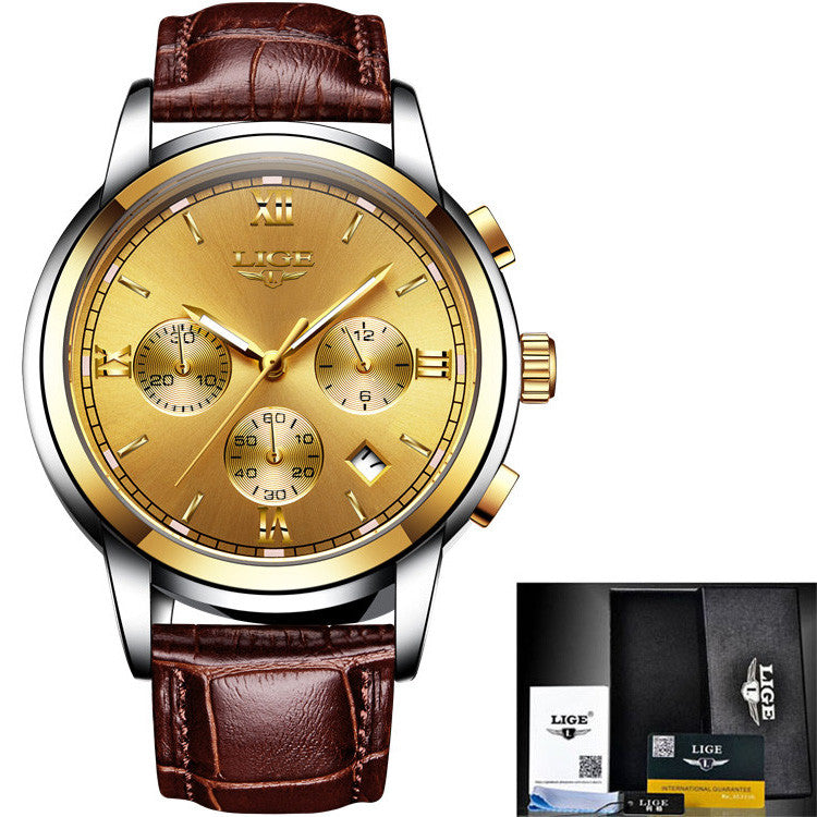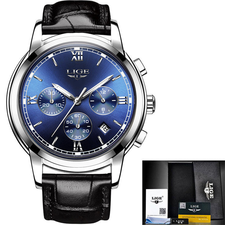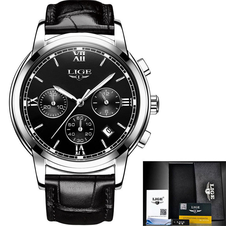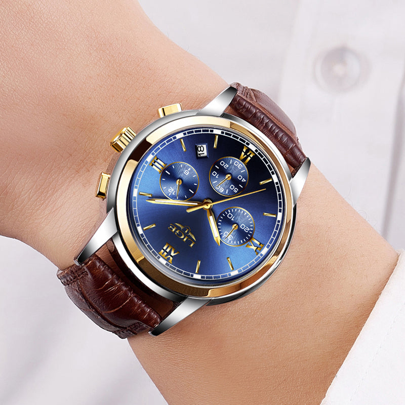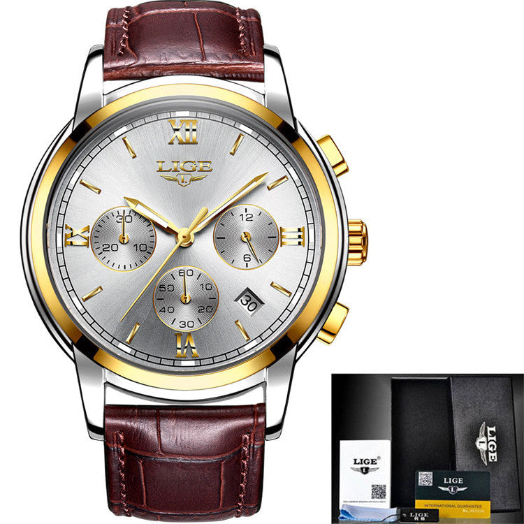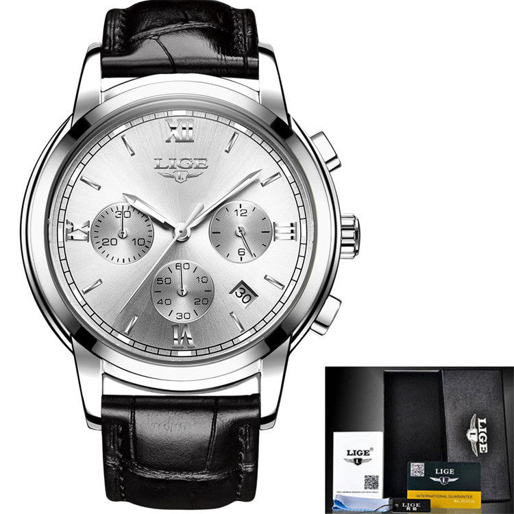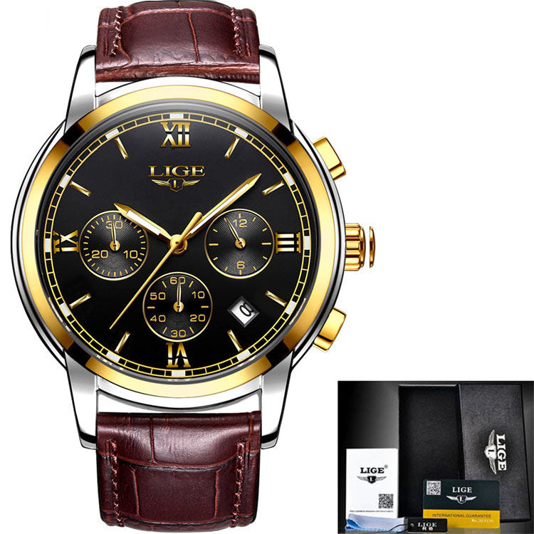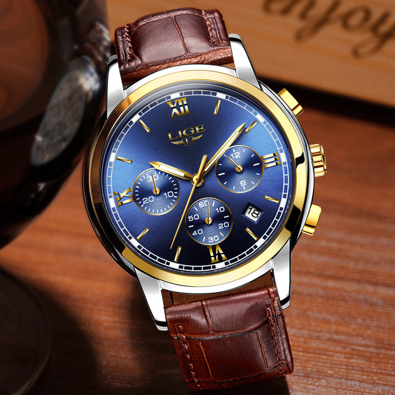 2017 LIGE Men sports Watches Male Fashion Business quartz-watch Men Leather Waterproof Clock Man Auto Date Multifunction Watches