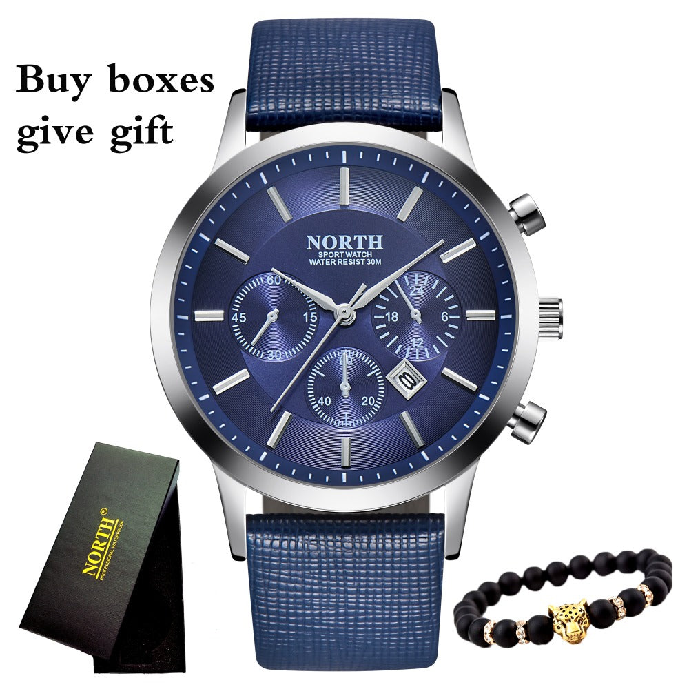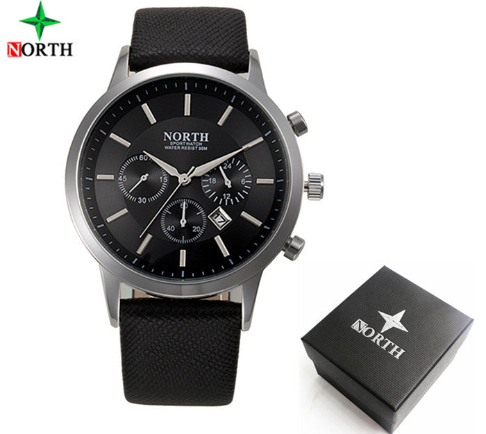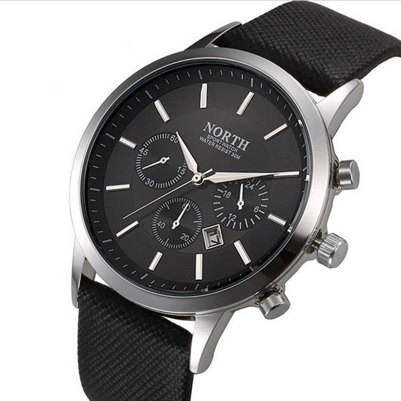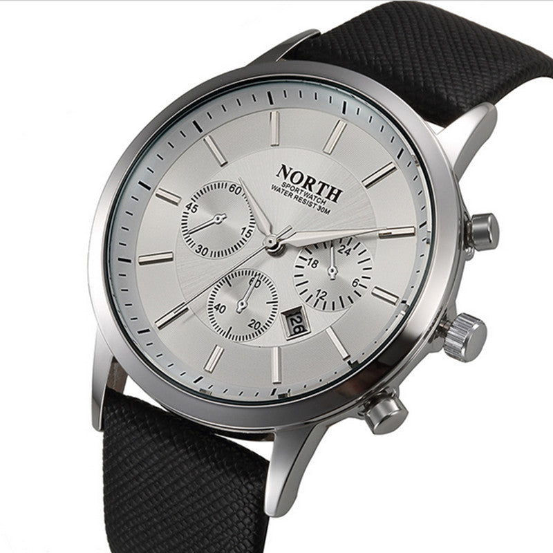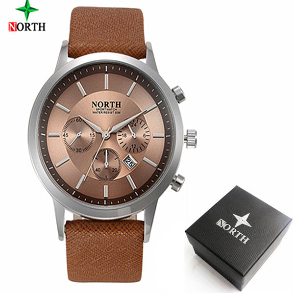 2017 Mens Watches NORTH Brand Luxury Casual Military Quartz Sports Wristwatch Leather Strap Male Clock watch relogio masculino