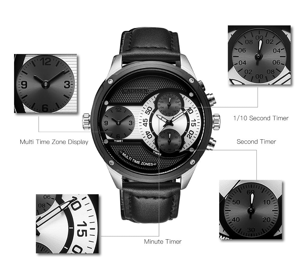 2017 New Luxury Brand CADISEN Men Watch Quartz Watches Big Design Dual time zone Casual Military Waterproof Wristwatch
