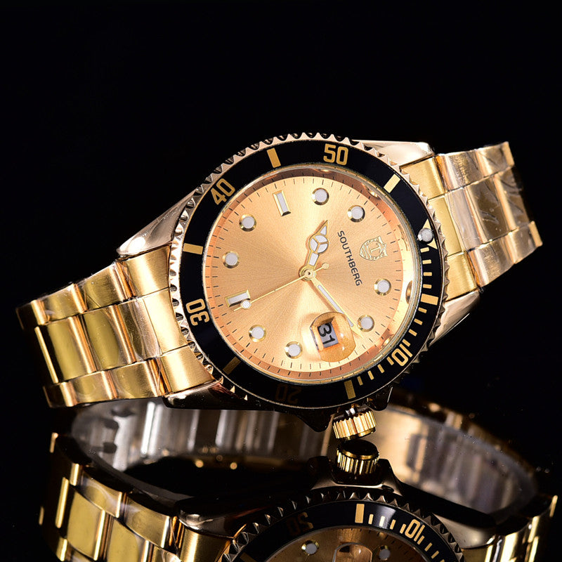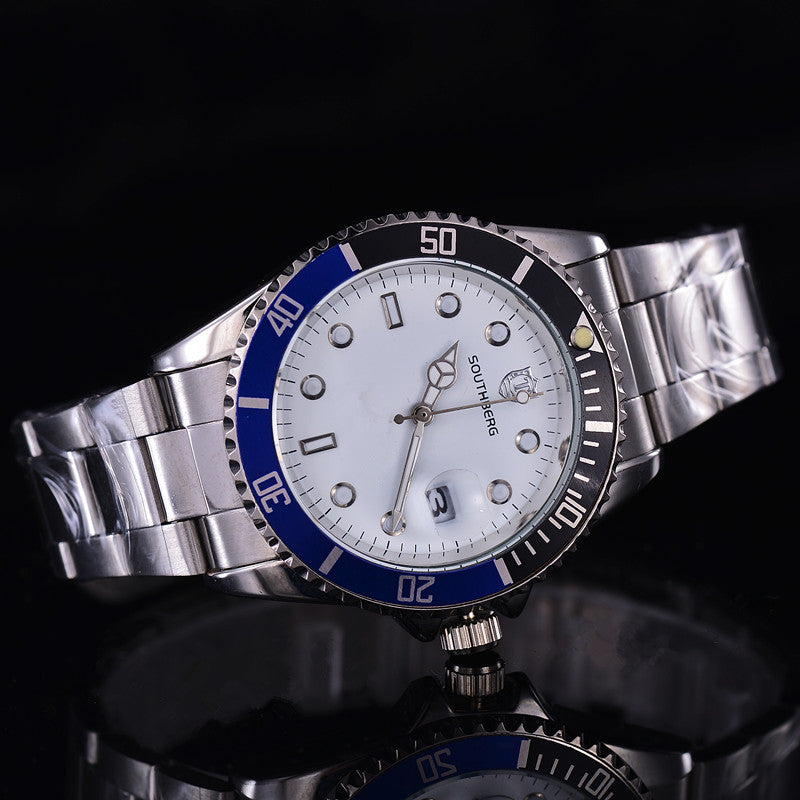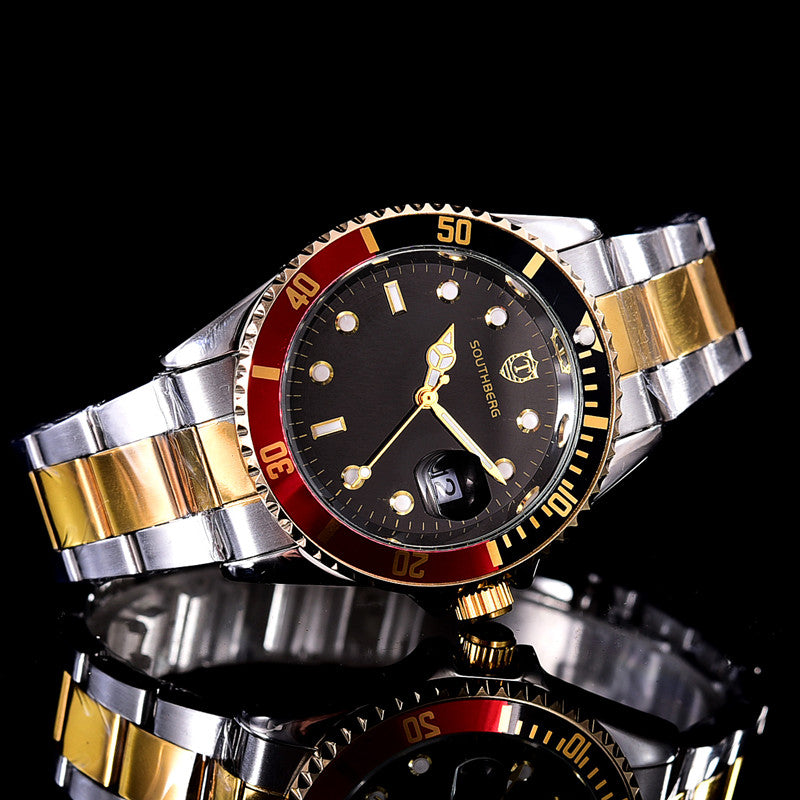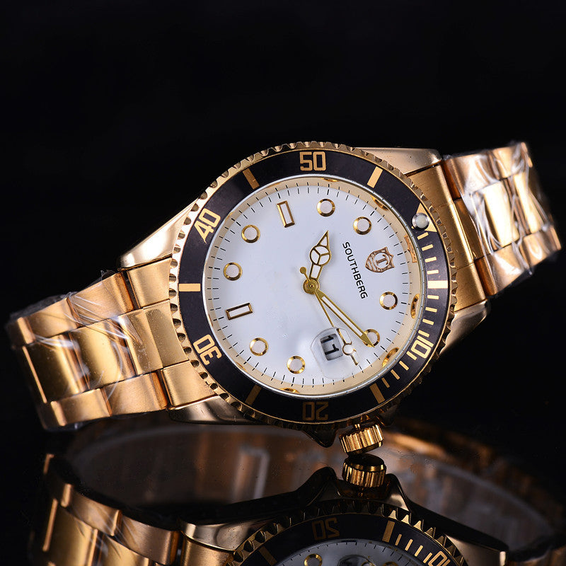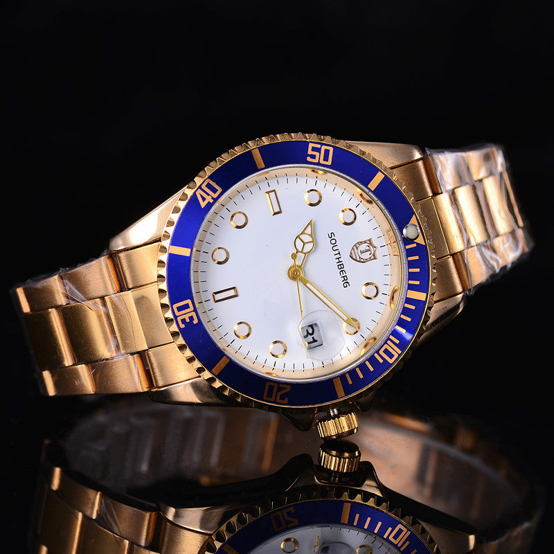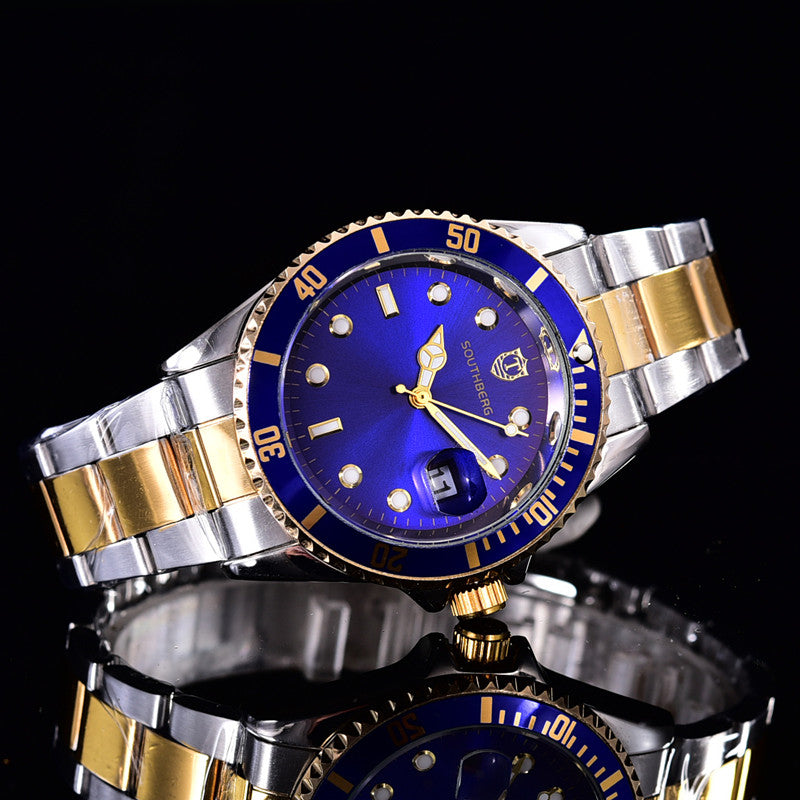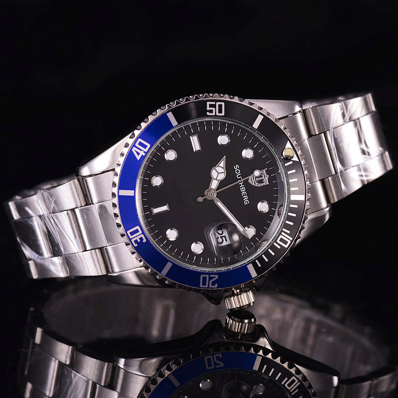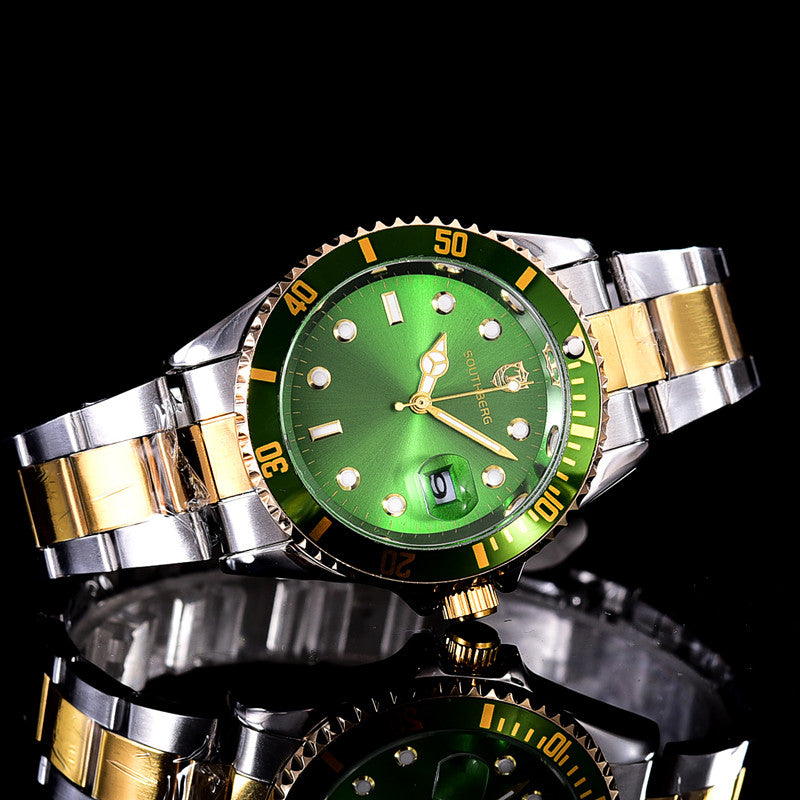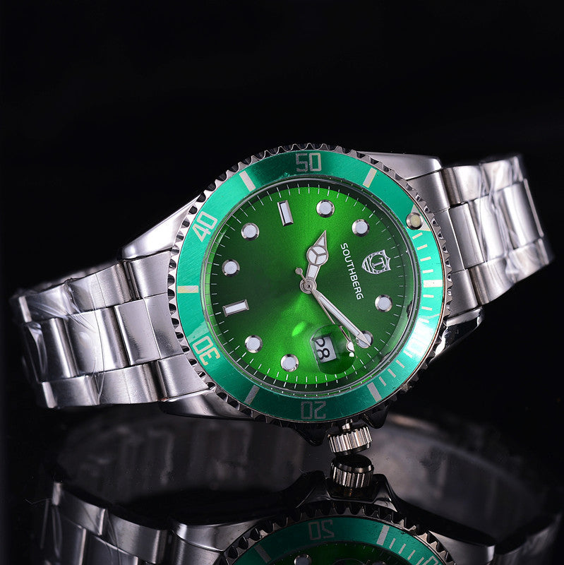 2017 SOUTHBERG Luxury Fashion Mens Watches Quartz Steel Top Brand Green Wrist Watch For Man relogio masculino