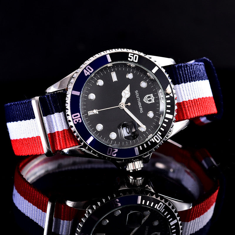 2017 SOUTHBERG Watch Men role Watches Luxury Famous Wristwatch Male Clock GMT Quartz Wrist Watch Calendar Relogio Masculino