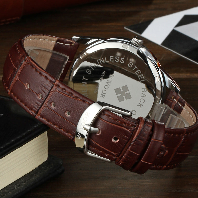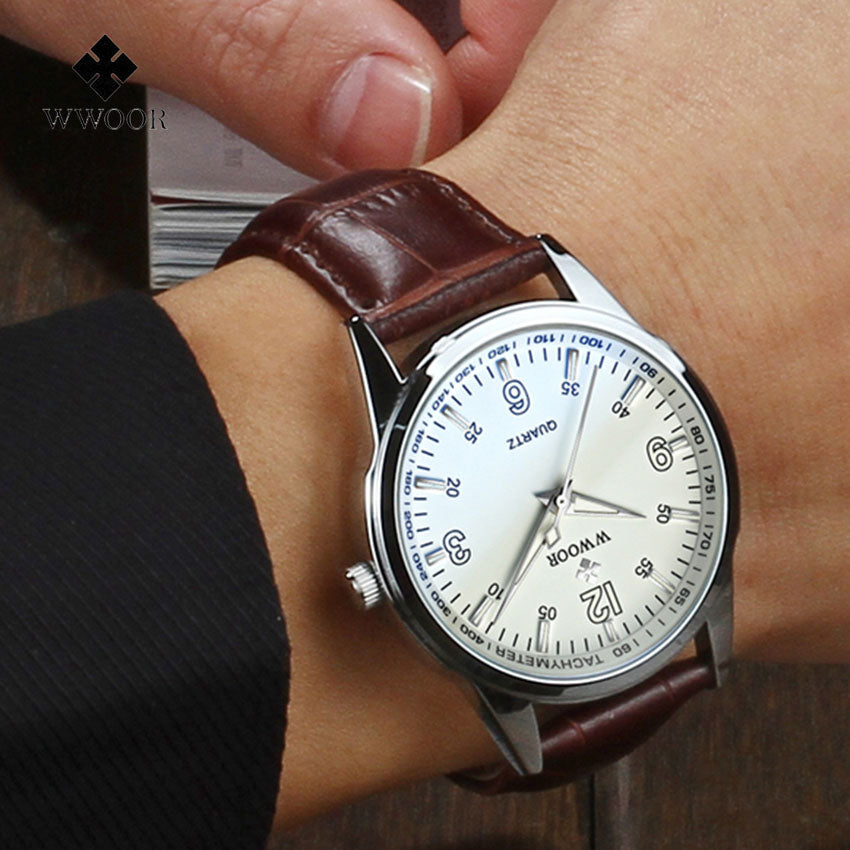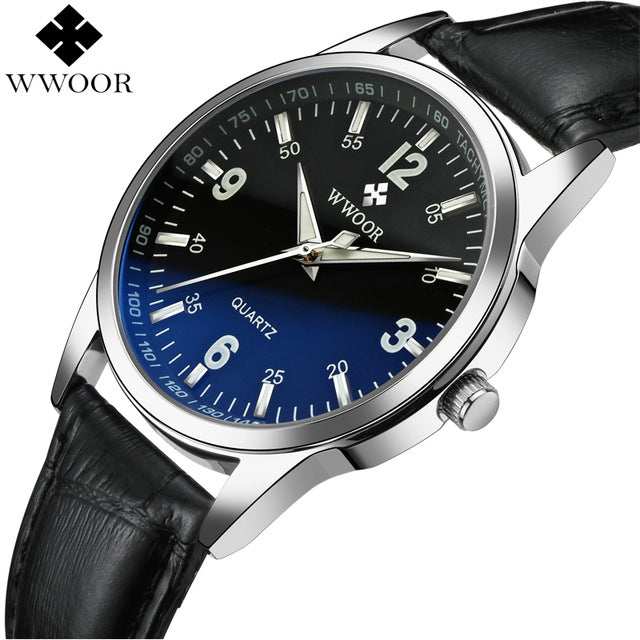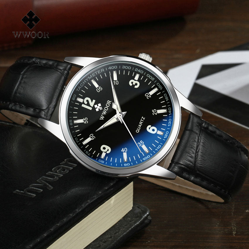 2018 Blue Glass Men Waterproof Quartz Watches Men Brand Luxury WWOOR Luminous Analog Clock Leather Strap Sport Wrist Watch 8861