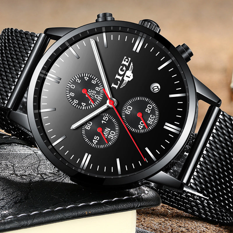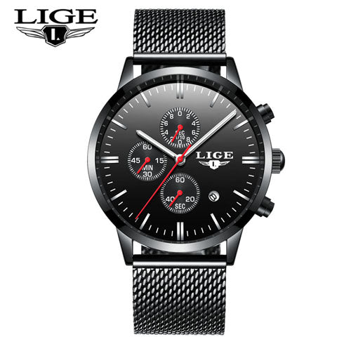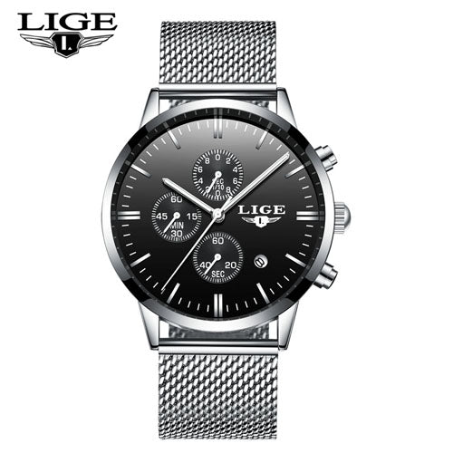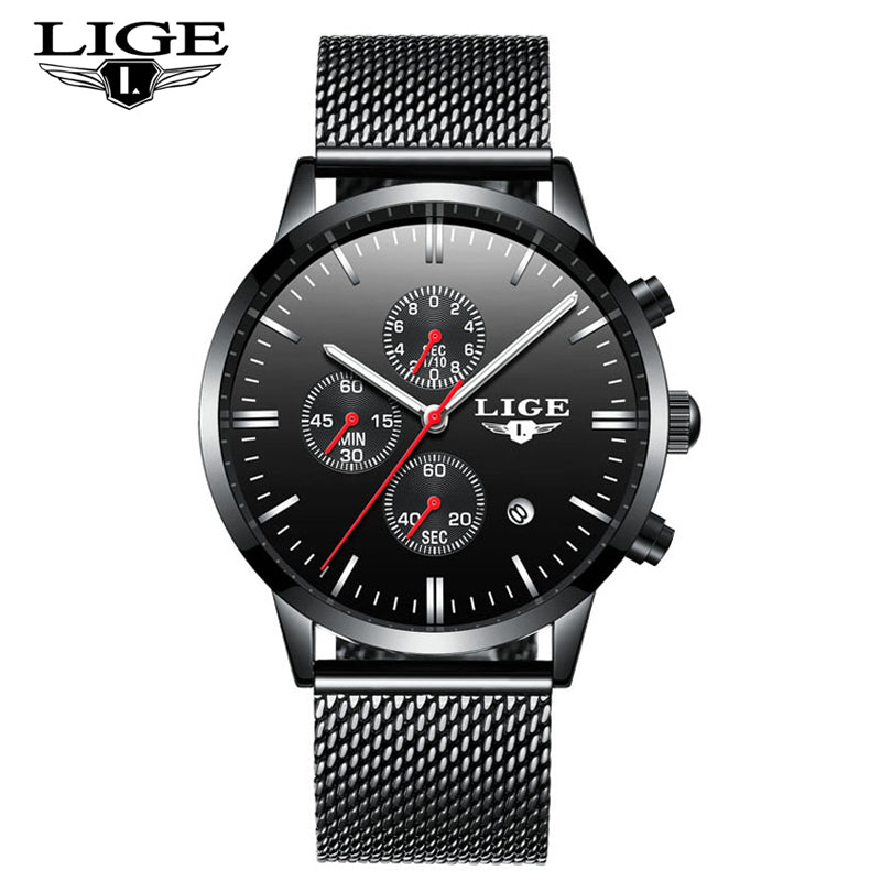 2018 LIGE Brand Luxury full Stainless Steel Watch Men Business Analog Quartz Watches Military Wristwatch Waterproof Relogio