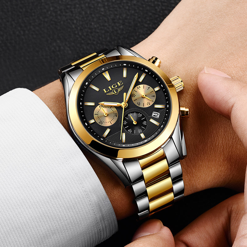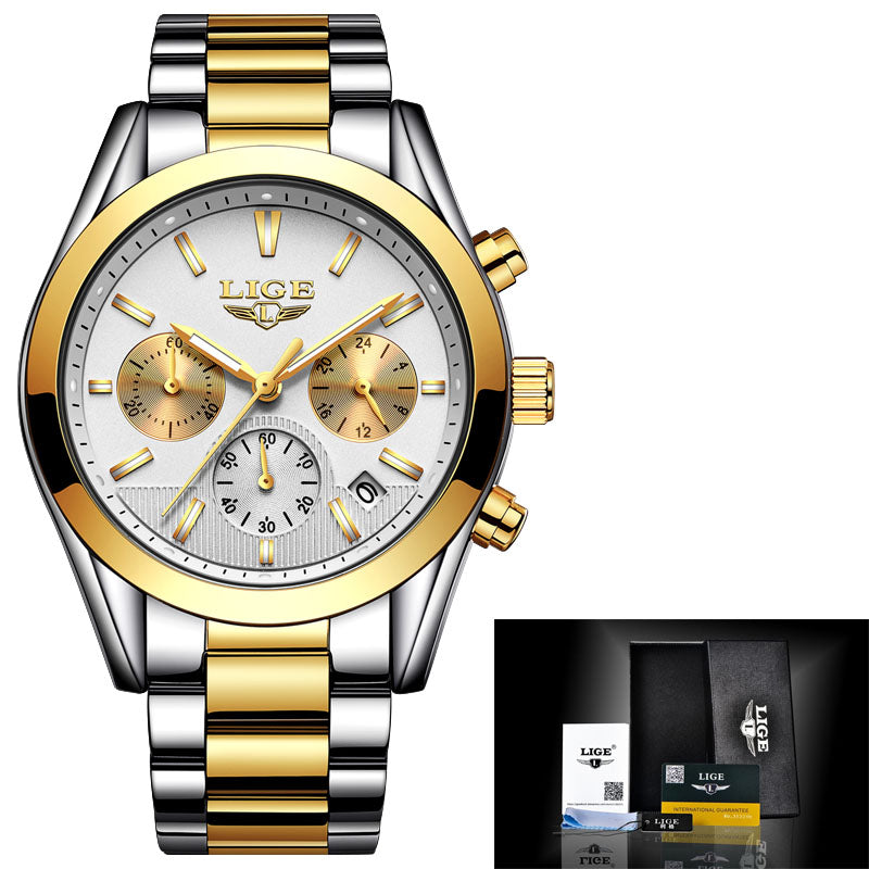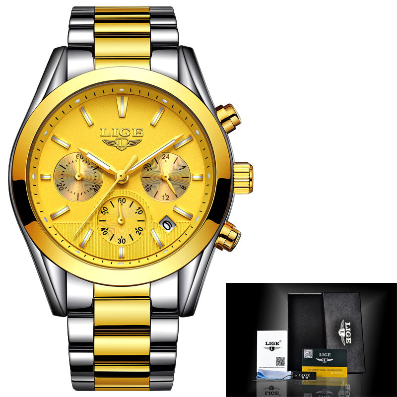 2018 New LIGE Men watch Luxury Brand Waterproof stainless steel Quartz watches Mens Sport fashio Black Clock Reloj masculino+Box