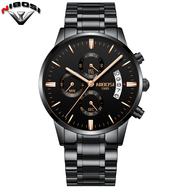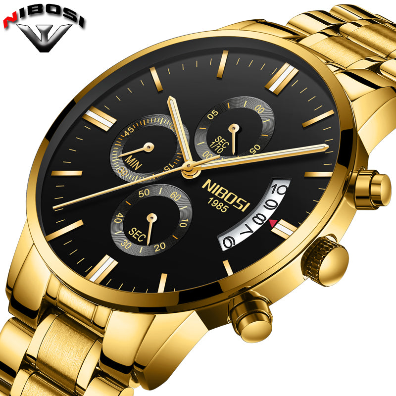 2018 NIBOSI Gold Quartz Watch Top Brand Luxury Men Watches Fashion Man Wristwatches Stainless Steel Relogio Masculino Saatler