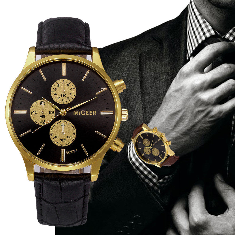 3 Dial Retro Design Watches Men Leather Band Analog Quartz Wrist Watch Business Brand Luxury Sports Digital Relogio Masculino