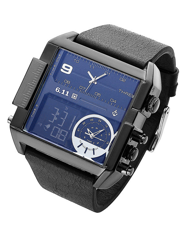 6.11 Square Watches Led Waterproof Multiple Time Zone Mens Watches Top Brand Luxury Relogio Masculino Montre Homme Sport Watch
