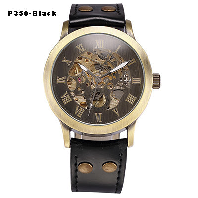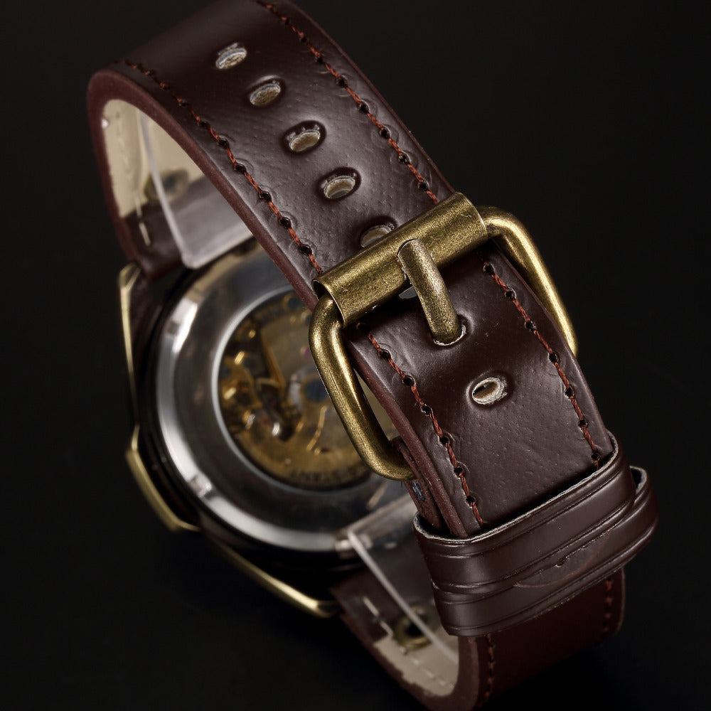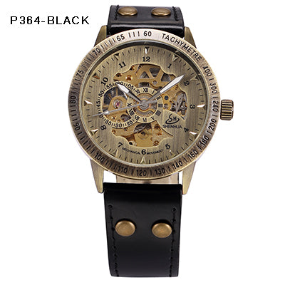 Automatic Mechanical Watches Men Steampunk Skeleton Wrist Watch Power Self Widing Bronze Antique Leather Clock Mens Wristwatches