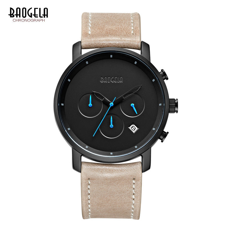 Baogela Chronograph Mens Watches Top Brand Luxury Leather Strap Children Sports Quartz Wrist Watches Multi-function Wristwatch