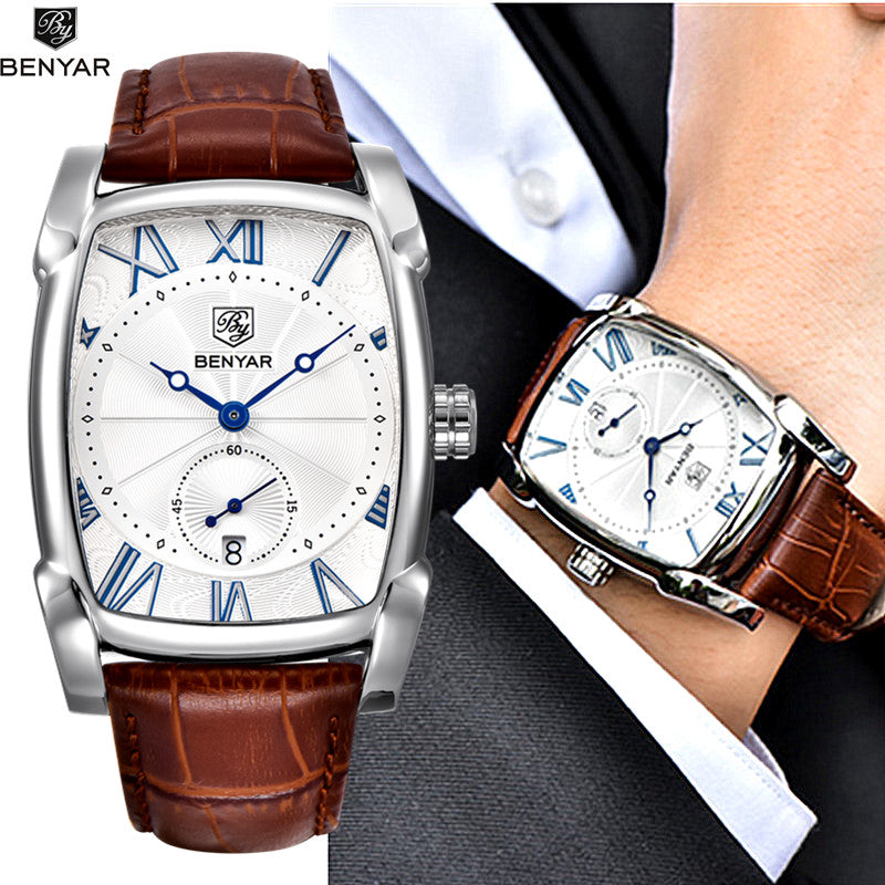Benyar 2017 Luxury Brand Quartz Mens Watches Brand Men Military Leather Men Sports Watch Hour Date Waterproof Relogio Masculino