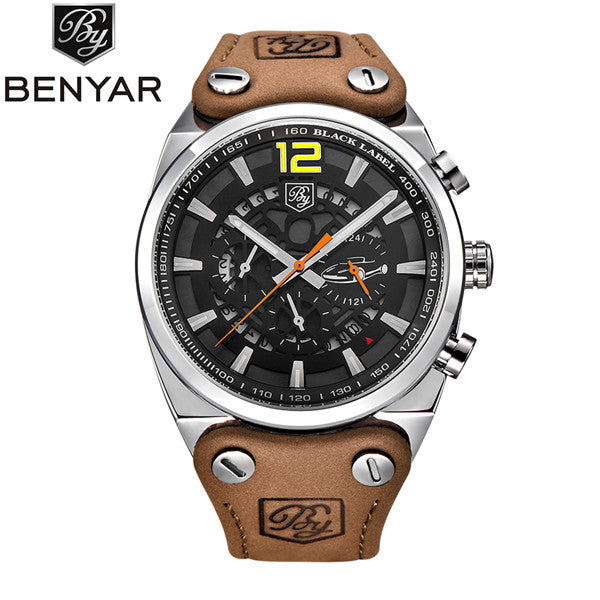 BENYAR Large dial design Chronograph Sport Mens Watches Fashion Brand Military waterproof Quartz Watch Clock Relogio Masculino