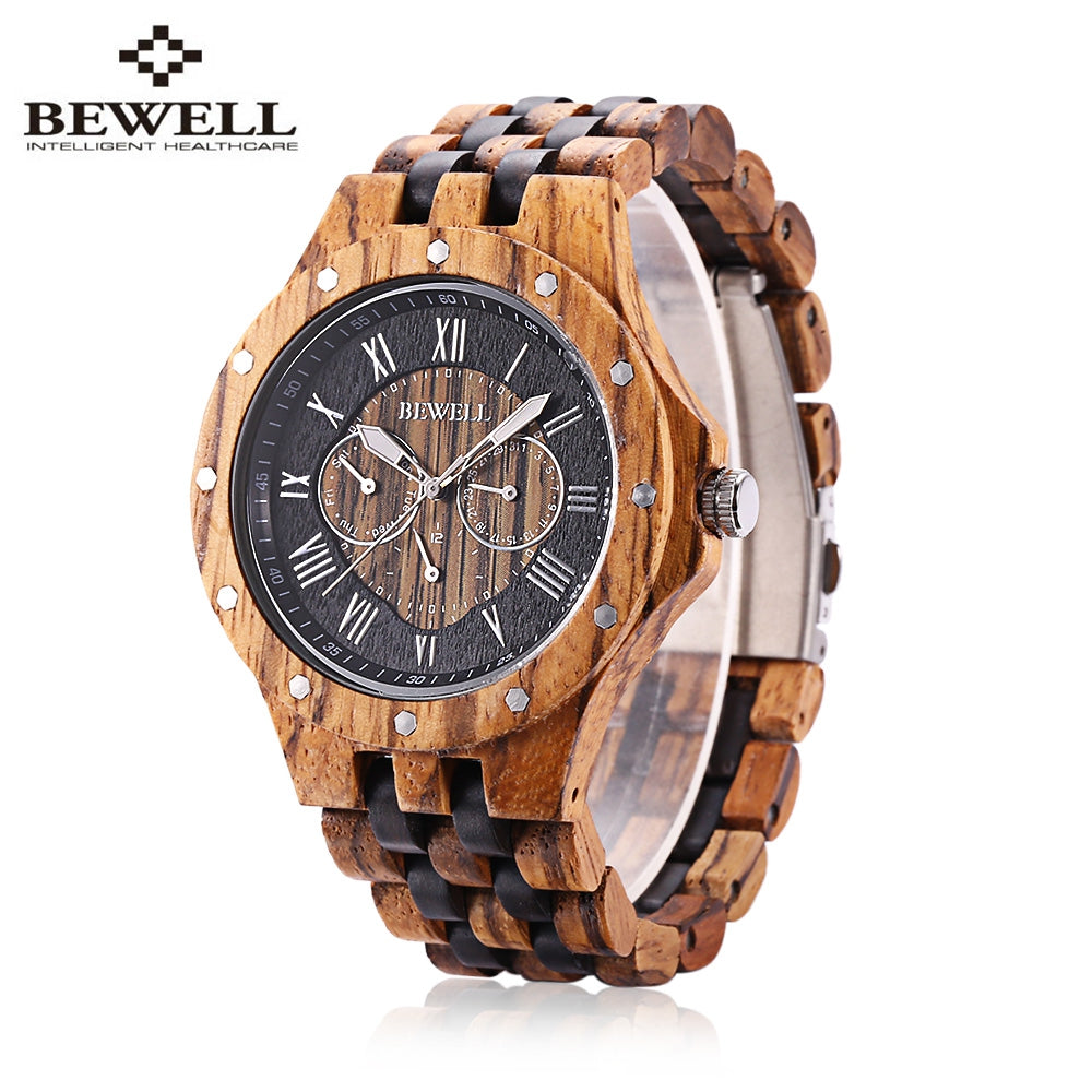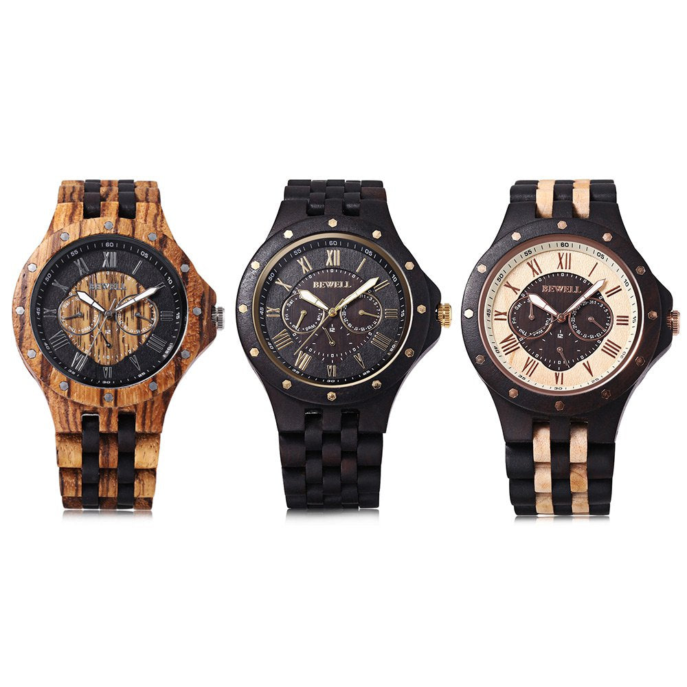 BEWELL Mens Watches, Male Business Wood Watch, Man Dress Quartz Watch, Waterproof Date Fashion Wrist watch relojes hombre