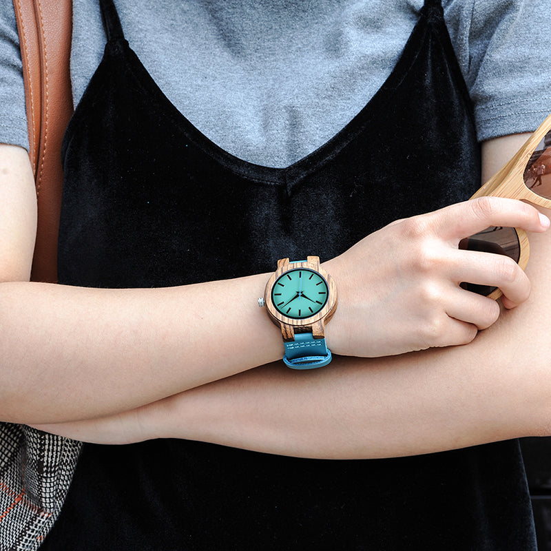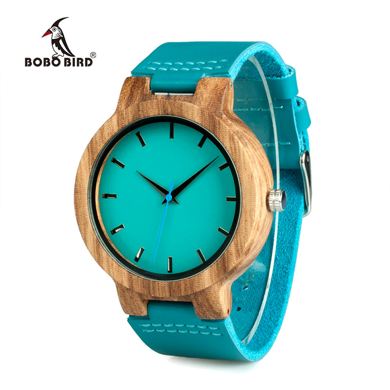 BOBO BIRD WC28 Blue Leather Band Antique Lovers Wood Watches With Blue Dial Zebra Wooden Watch in Gift Box Accept Drop Shipping