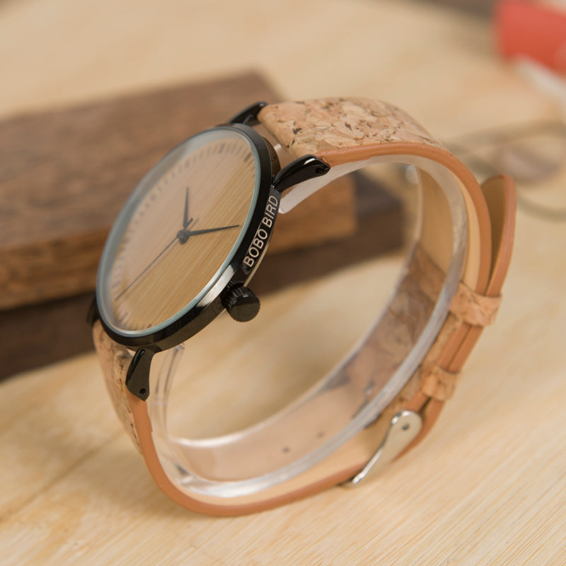 BOBO BIRD WE19 Top Quality Round Watches Bamboo Face with Stainless Steel Case Cork Leather Bands with Gift Box Drop Shipping