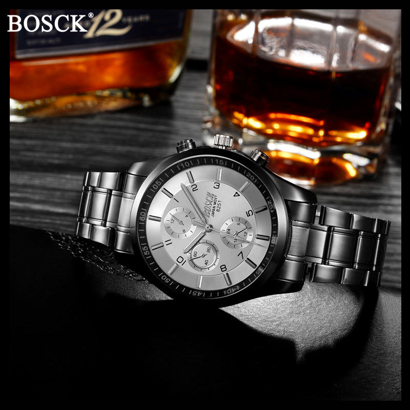 BOSCK Top Luxury Brand Watch Men Casual Brand Watches Male Quartz Watches Men Waterproof Business Watch Military Stainless Steel