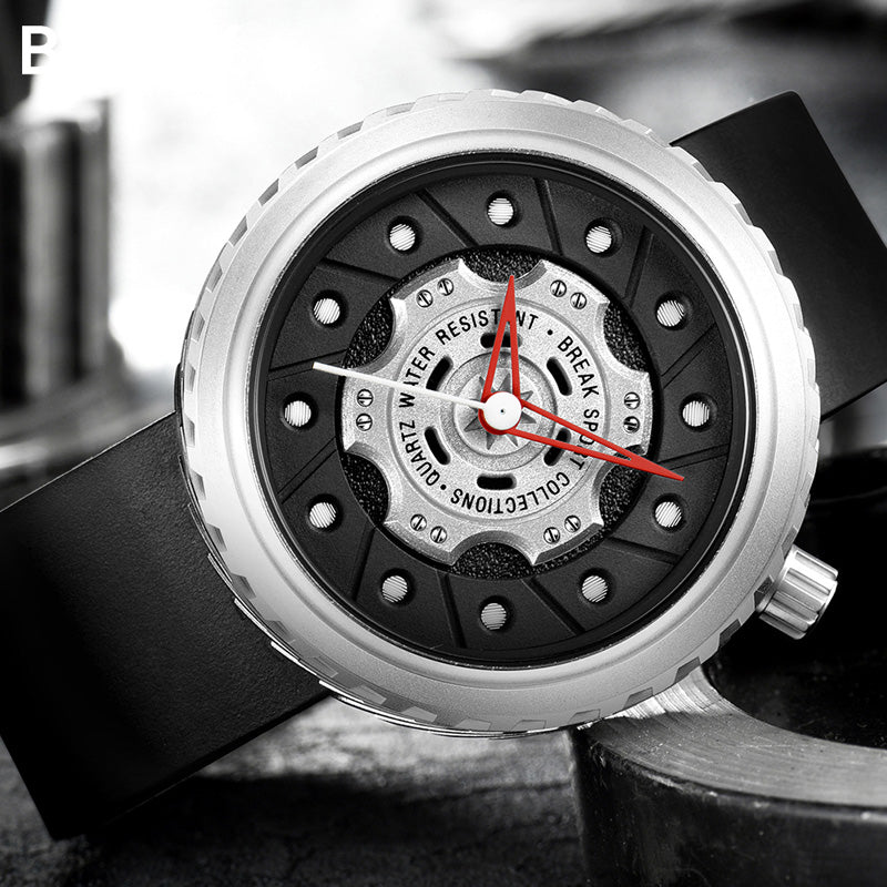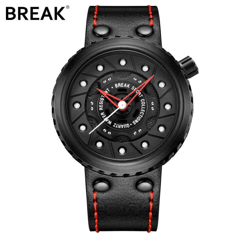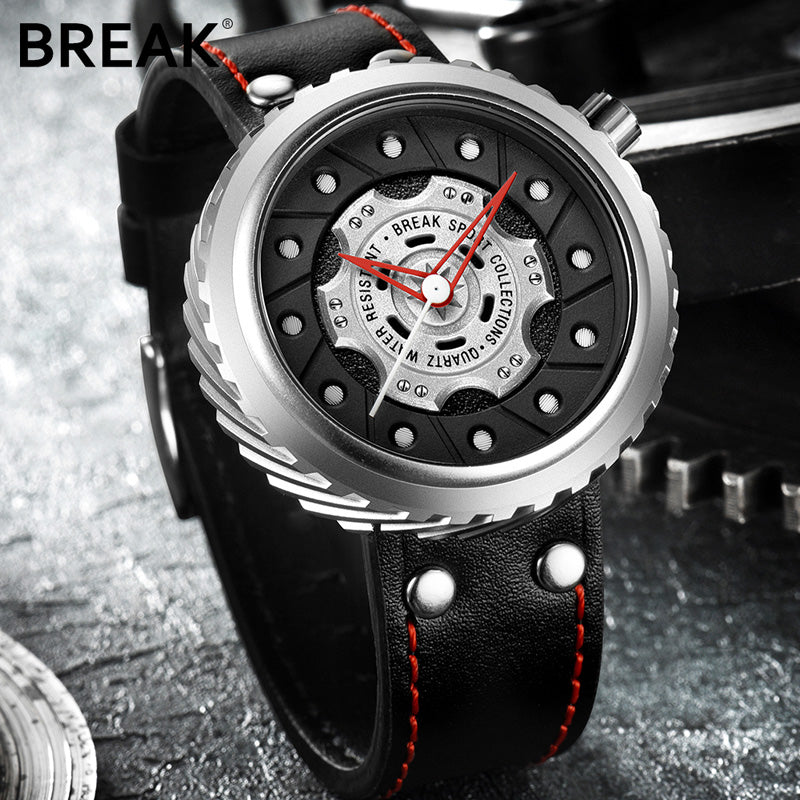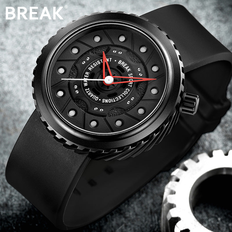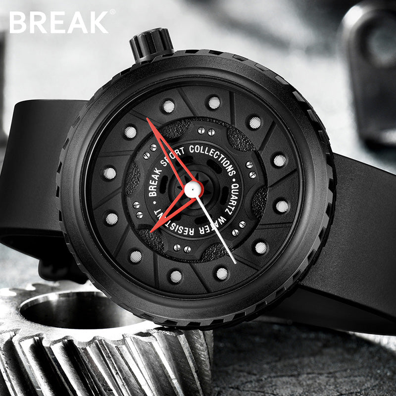 BREAK Men Quartz Sport Watch Man Rubber Leather Strap Casual Fashion Top Luxury Brand Waterproof Geek Creative Gift Wristwatches