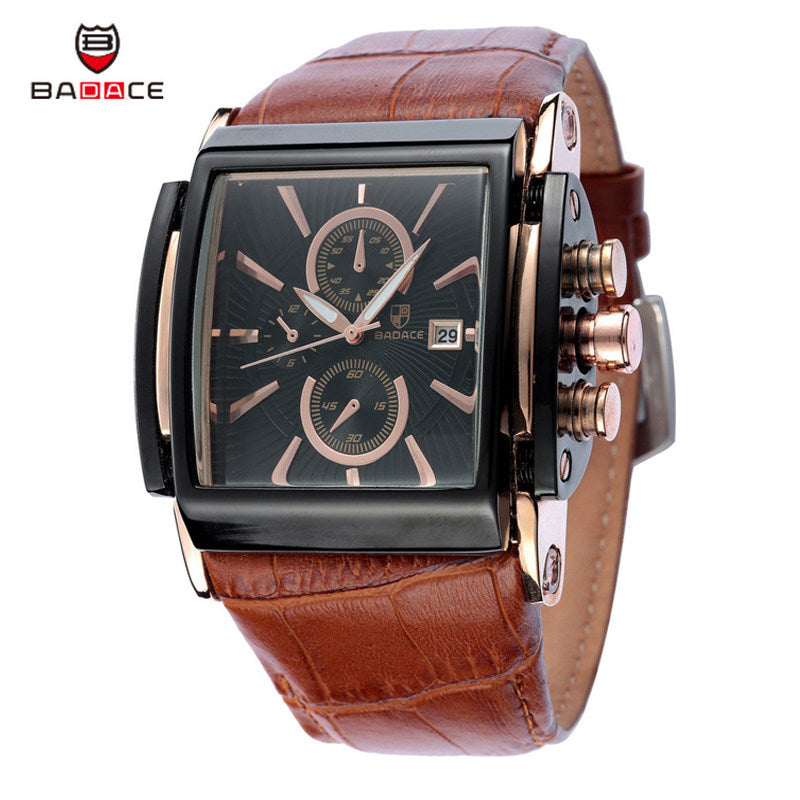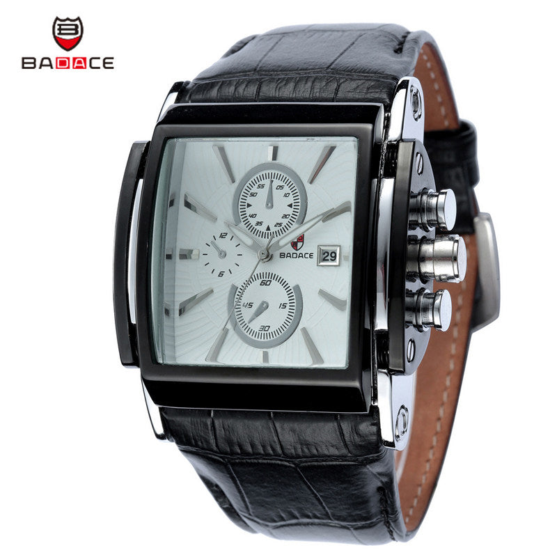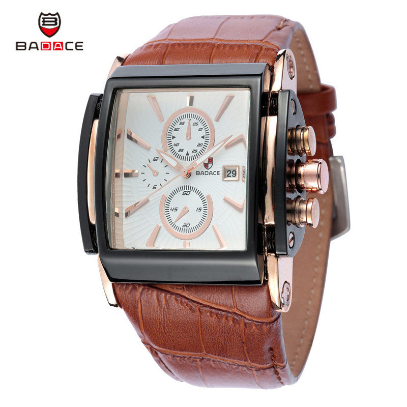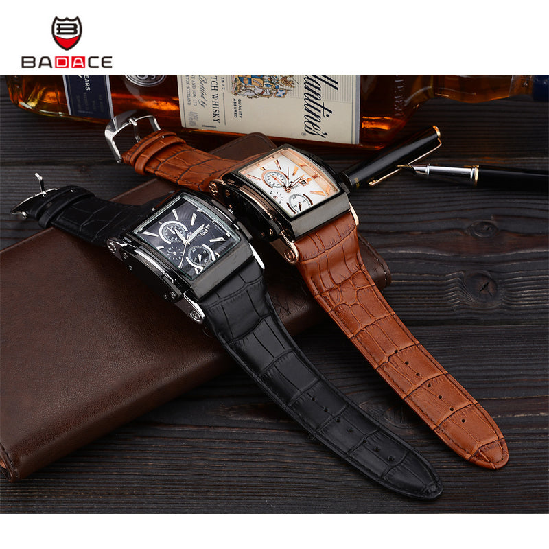 Christmas Gift BADACE Top Brand Genuine Real Leather Strap Mens Watches Casual Square Japan Movt Quartz Watch Wrist Watch 2098