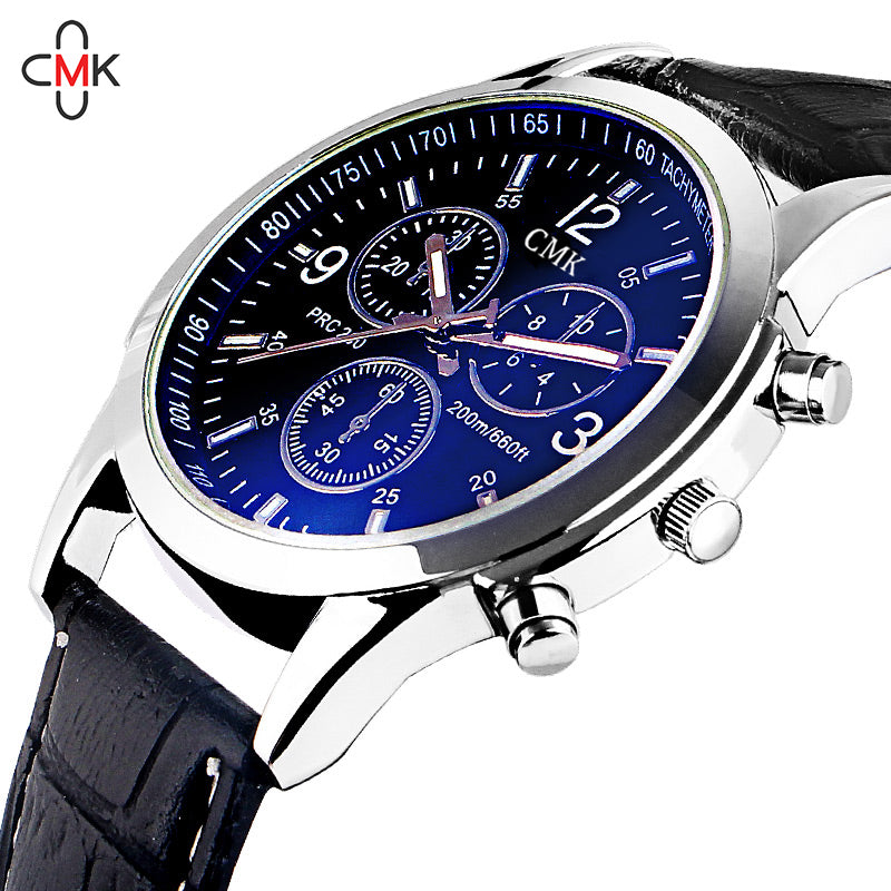 CMK New Fashion Blu-ray Glass Men Watches Men Soft Leather Strap Sport Male Quartz Wristwatch Three Dial Display erkek kol saati