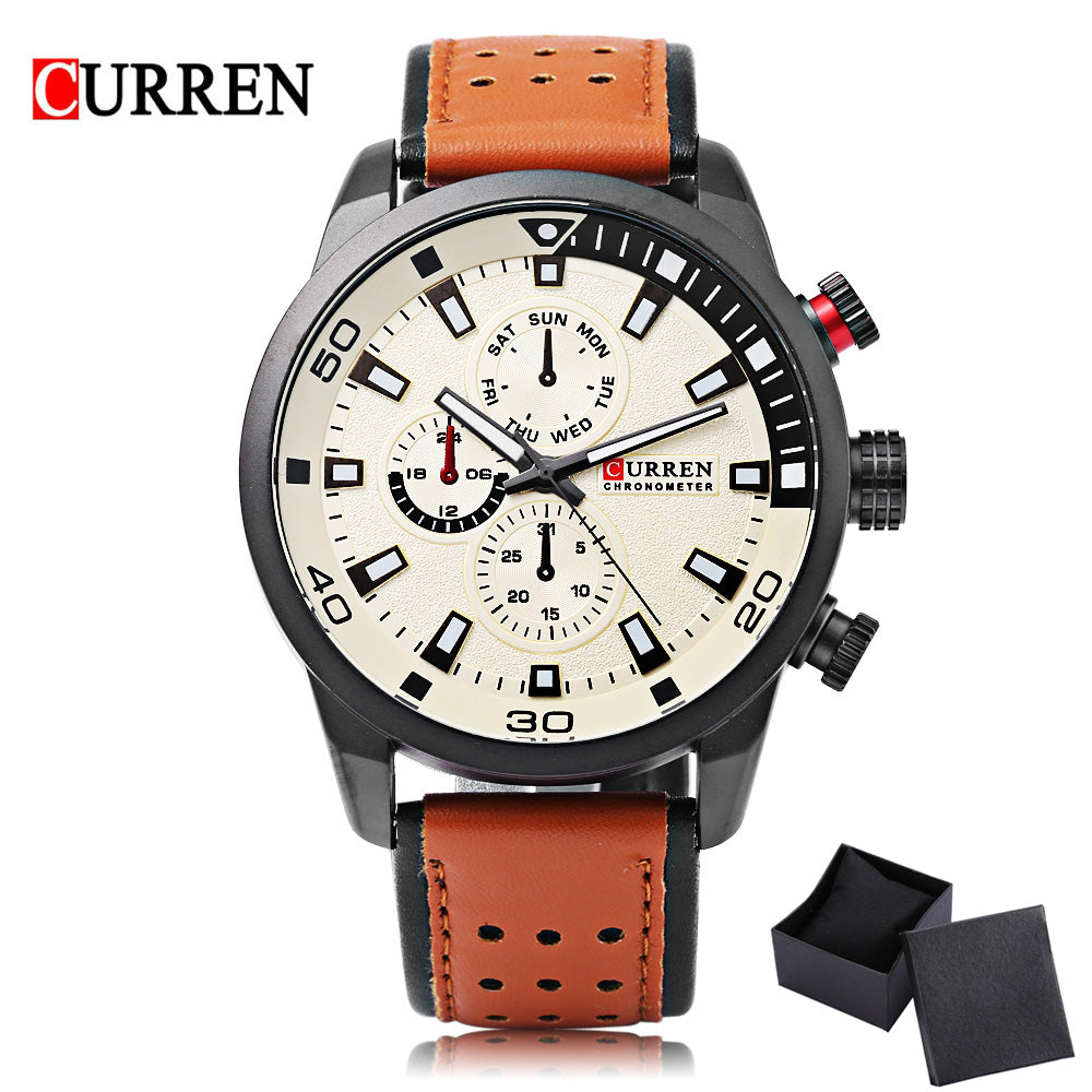 CURREN 8250 Sport Men Quartz Watch Fashion Simple Relogio Masculino Men Military Watches Genuine Leather Clock Men Wristwatch
