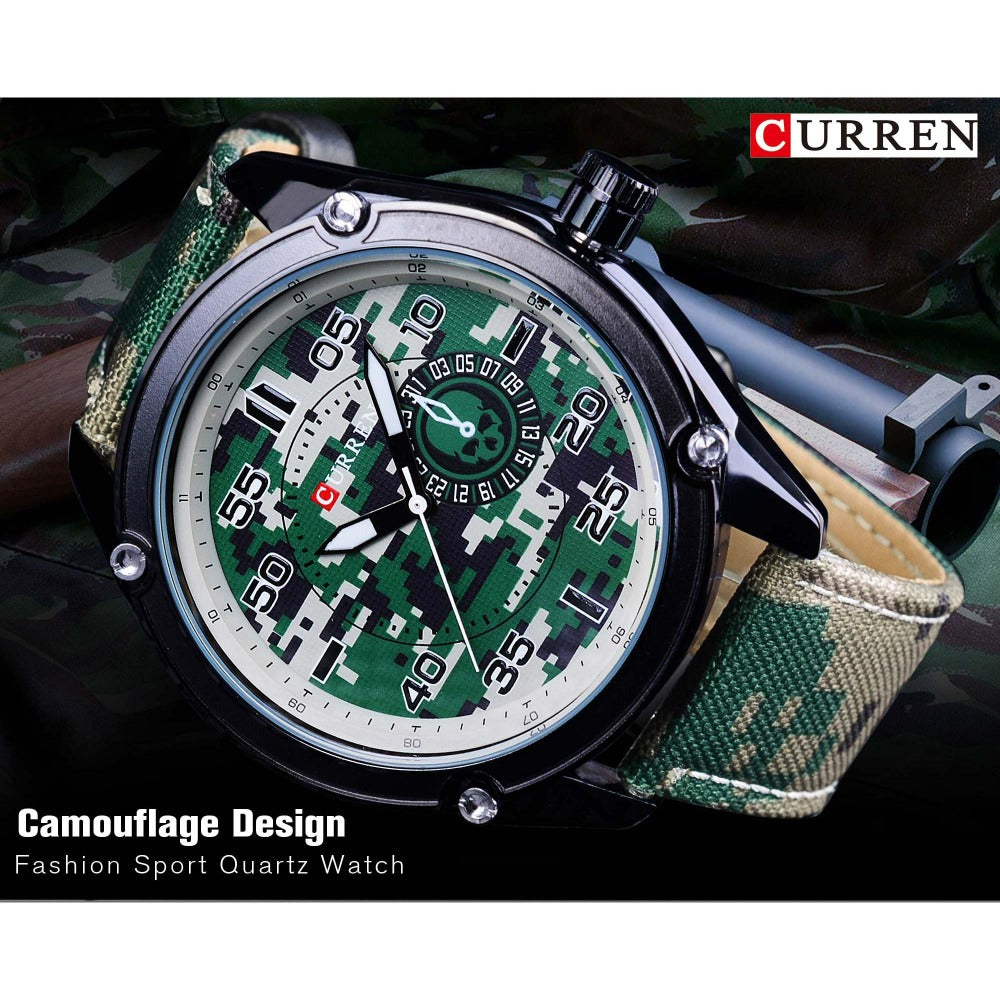 CURREN Army Fashion Military Design Green Nylon Band Waterproof Luminous Hands Mens Watch Top Brand Luxury Quartz Sport Watches