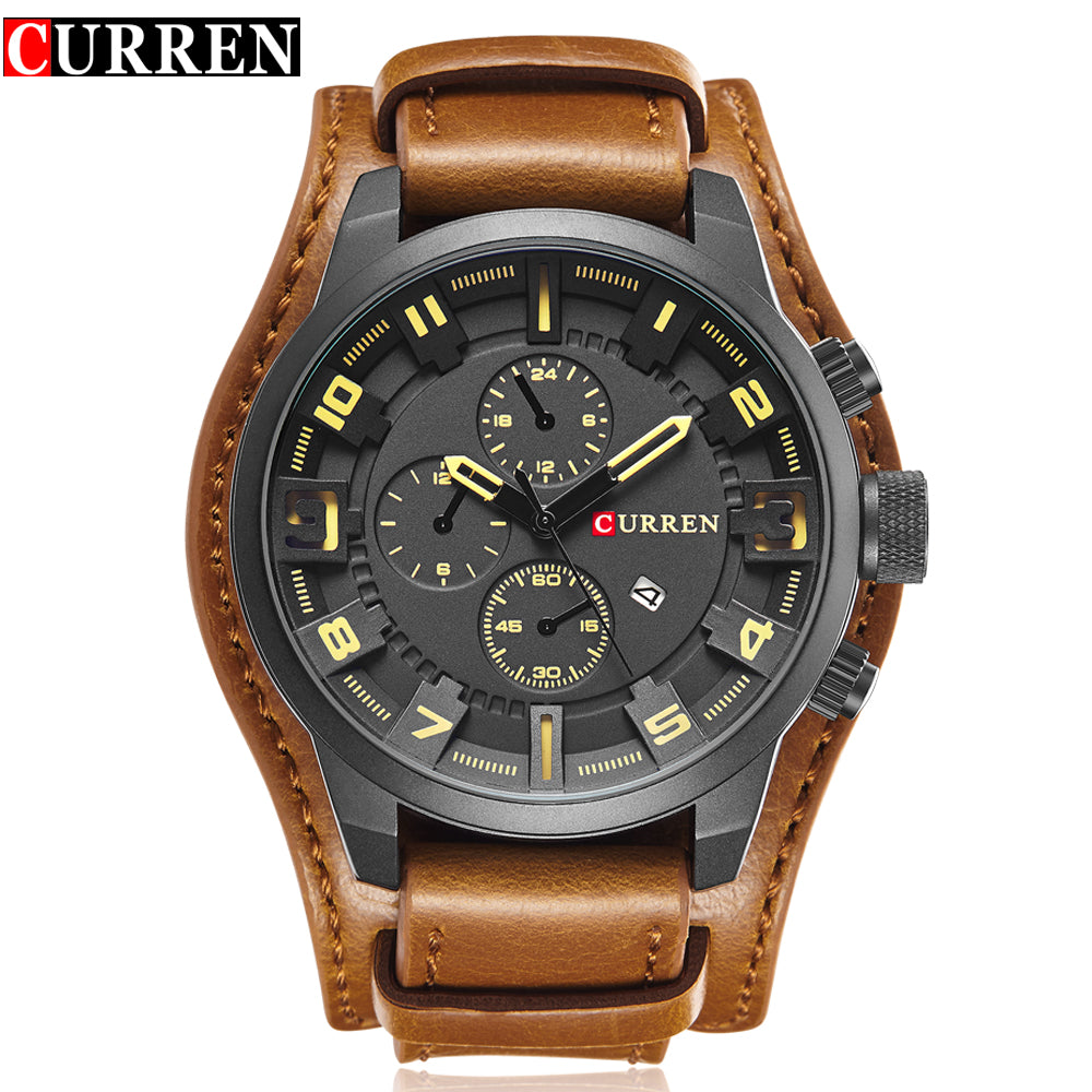 CURREN Top Brand Luxury Quartz Watches Men's Sports Quartz-Watch Leather Strap Military Male Clock Fashion New Gift Relogio