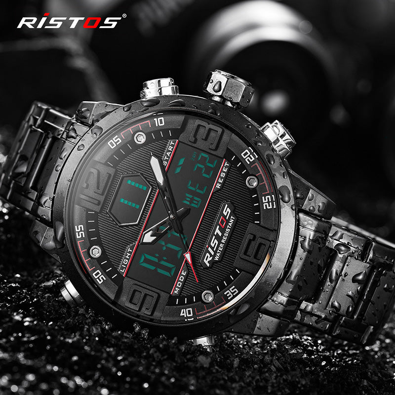 Digital Quartz Watch Men Outdoor Sport Luxury Brand RISTOS Fashion Waterproof Display LED Analog Wristwatches montre homme