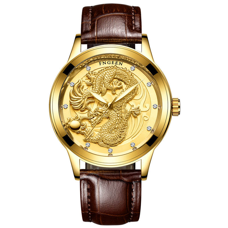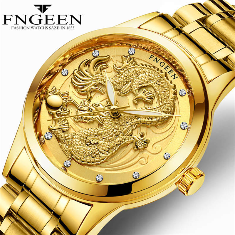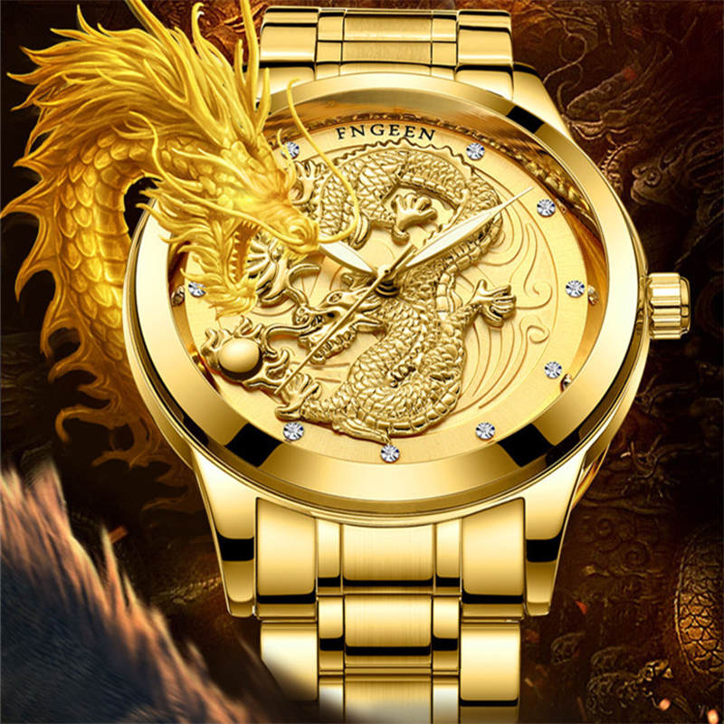 Dragon Gold Watch men watches fashion stainless steel Wristwatch 3D art Quartz clock waterproof Luxury Cool super mens relogio