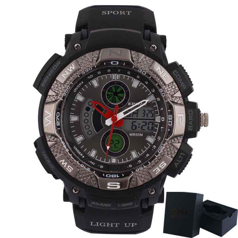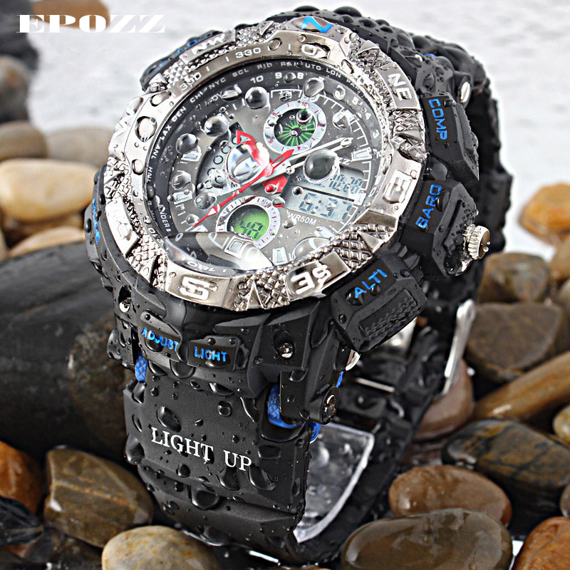 Epozz 2016 Fashion Analog digital mens sport watches swimming Male Watch waterproof 50m round plastic ring hours outdoor E1311