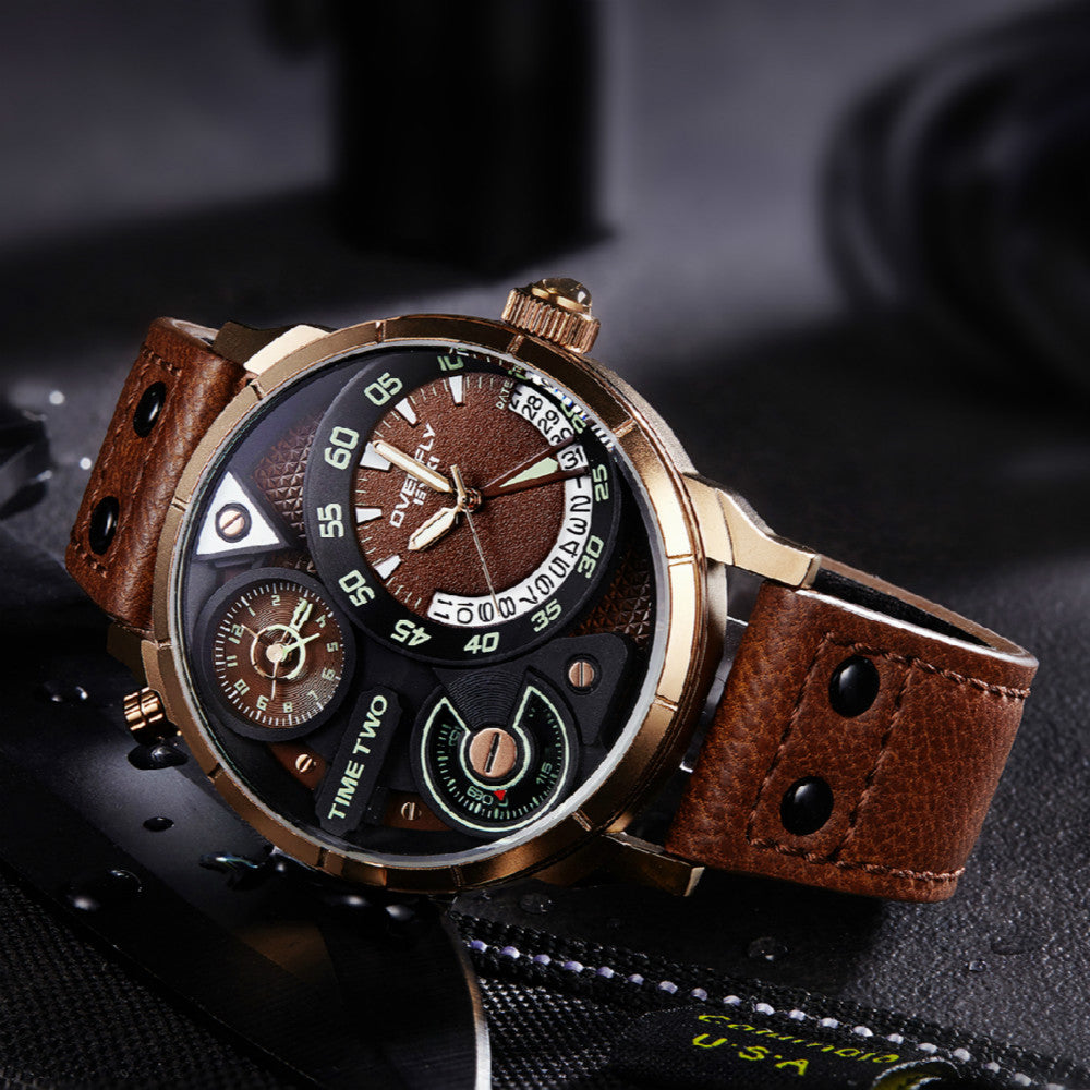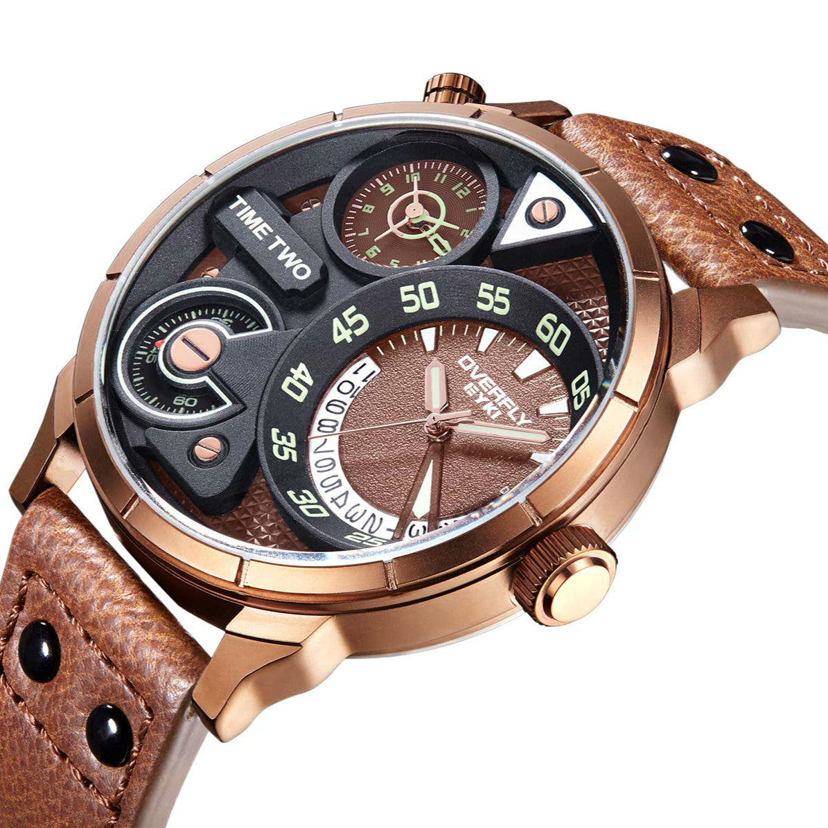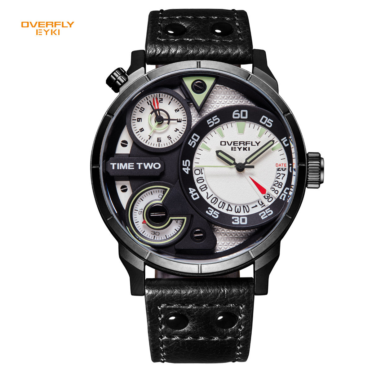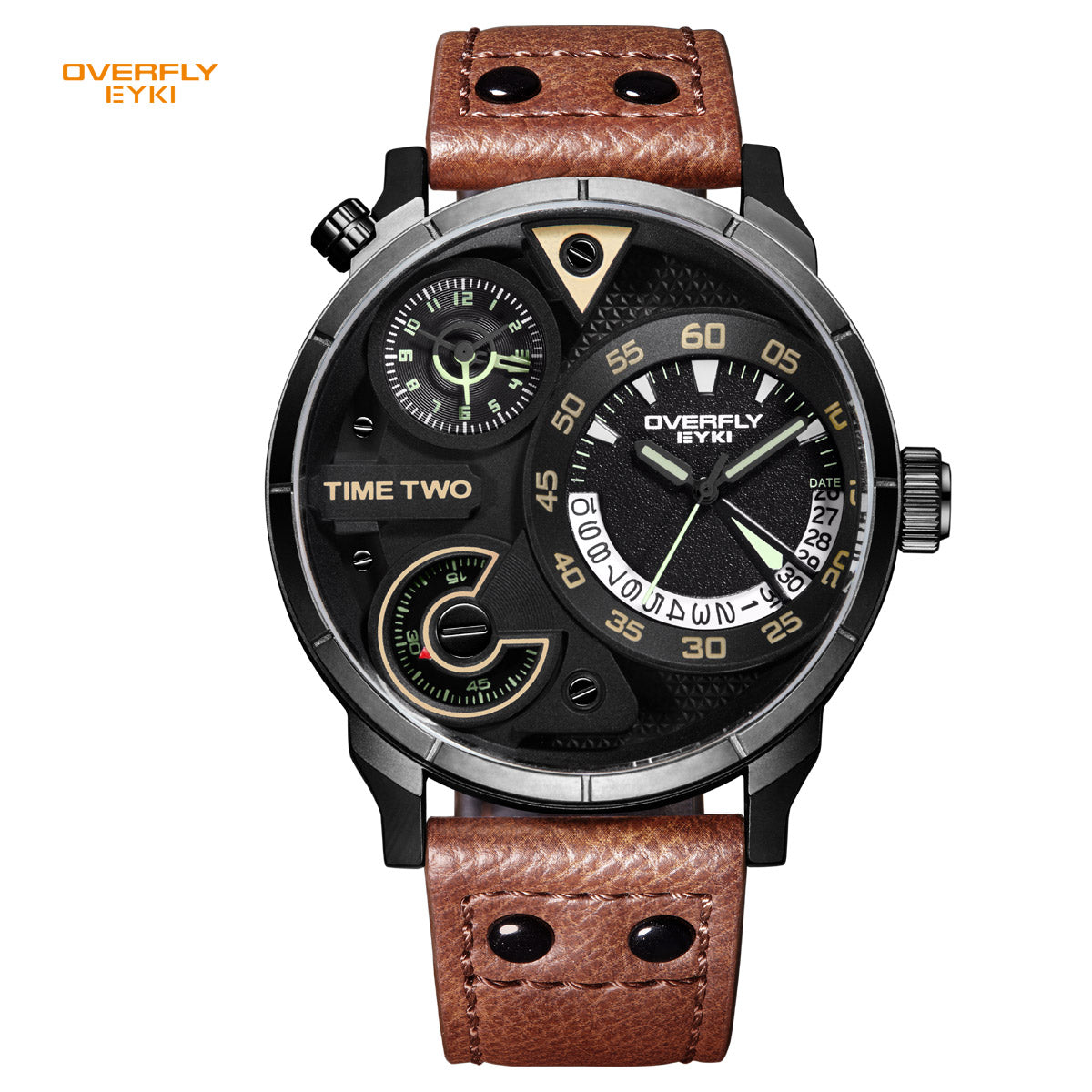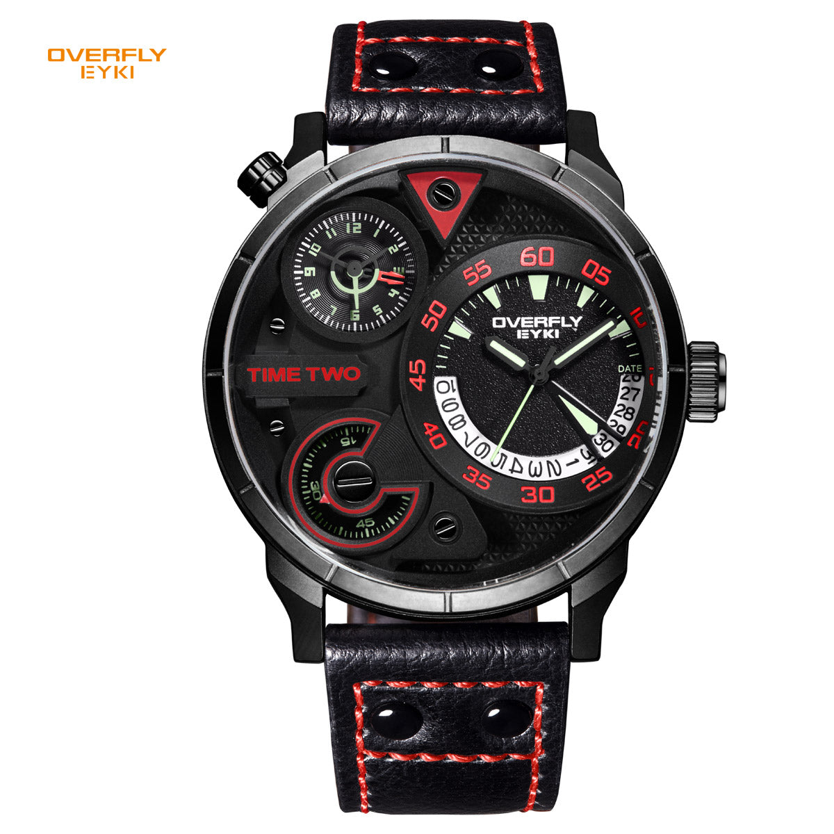 EYKI Men Watches Super Stereoscopic Big Dial Two Time Zone Leather Sport Watch Male Waterproof Luminous Clock Relogio Masculino