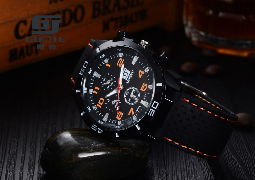 Fashion casual watch man 3 eye brand luxury mountain climbing military silicone strap men quartz watch reloj hombre