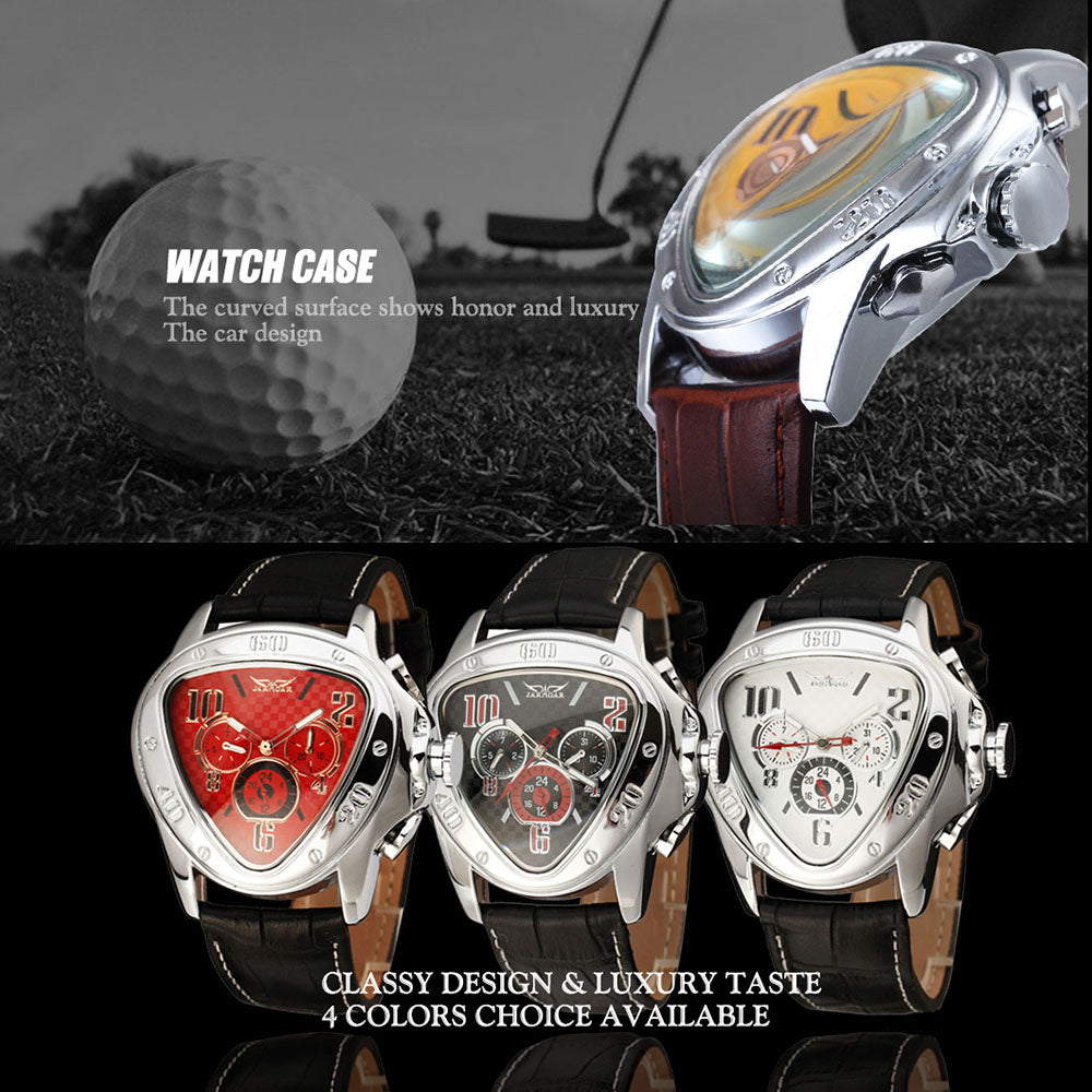 Fashion Luxury Men Automatic Mechanical Wrist Watches Top Brand WINNER Triangle Men's Watches 3 Sub-dials 6 Hands reloj hombre