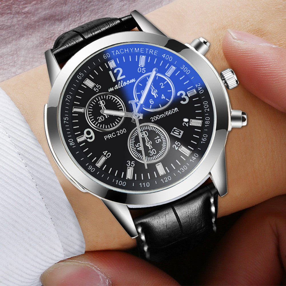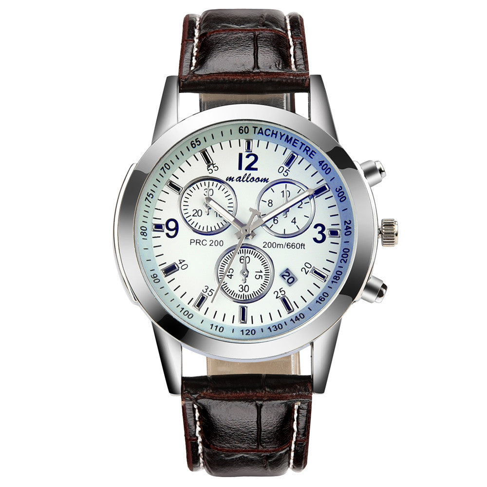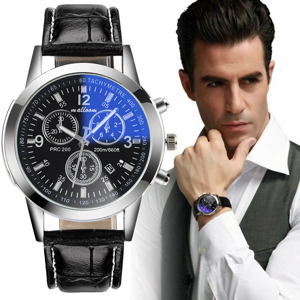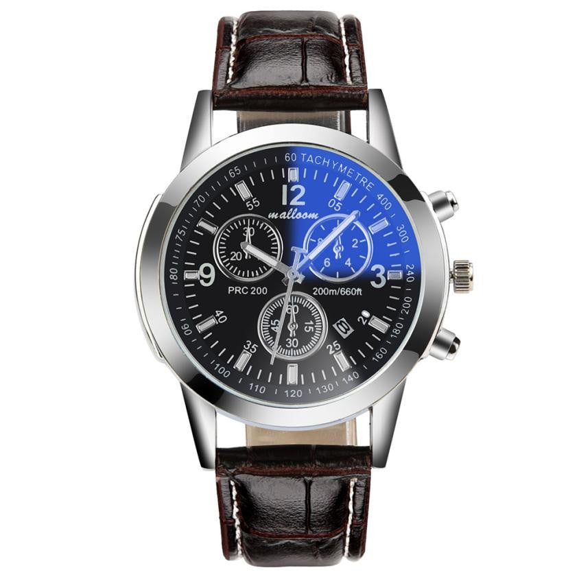 Faux Leather Mens Blue Ray Glass Watch Women Business Style Stainless Steel Dial Quartz Wrist Watches Relogio Masculino #LH