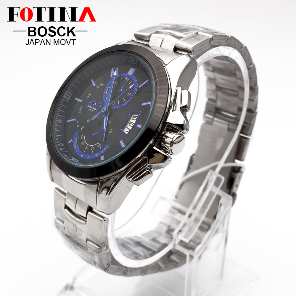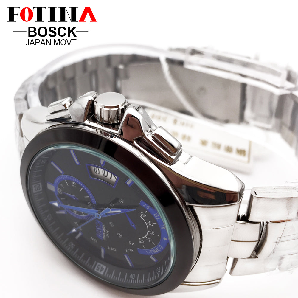 FOTINA Top Brand BOSCK Casual Business Watch Men Stainless Steel Water Resistant Quartz Clock Auto Day Date Watches Montre Homme