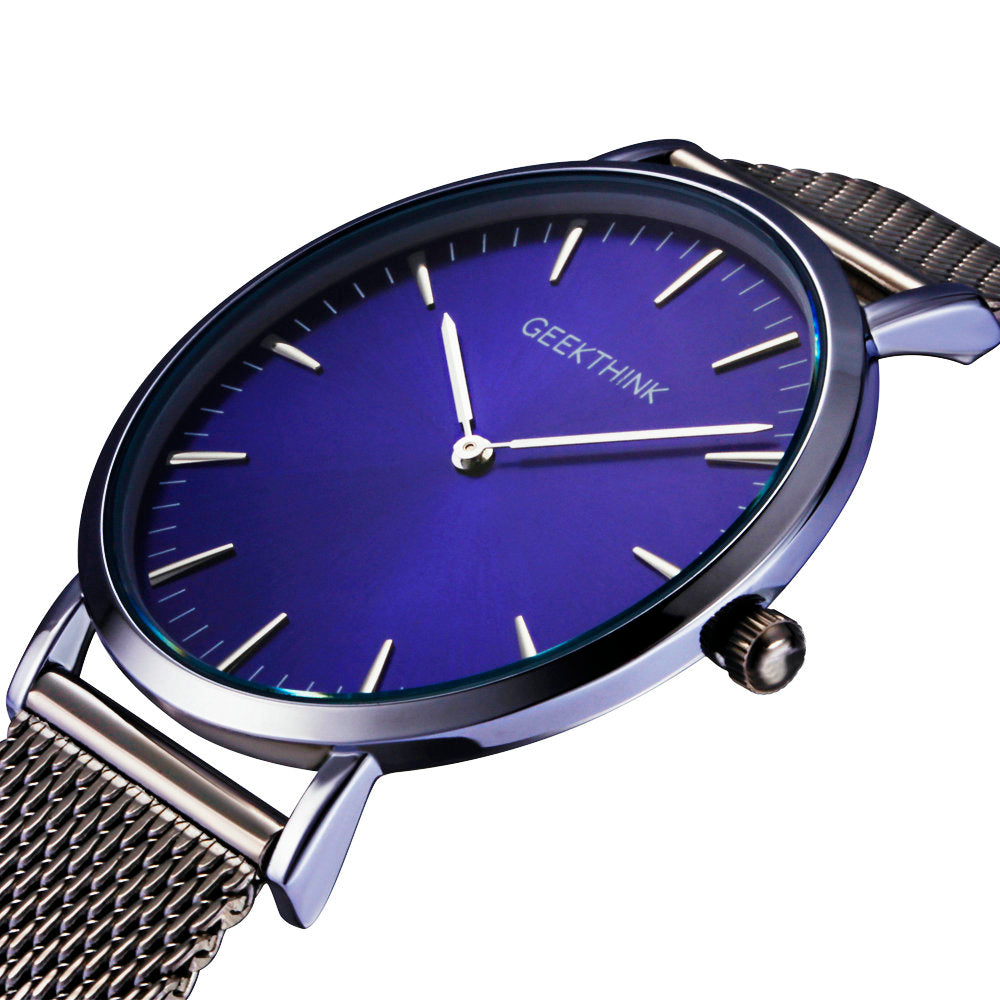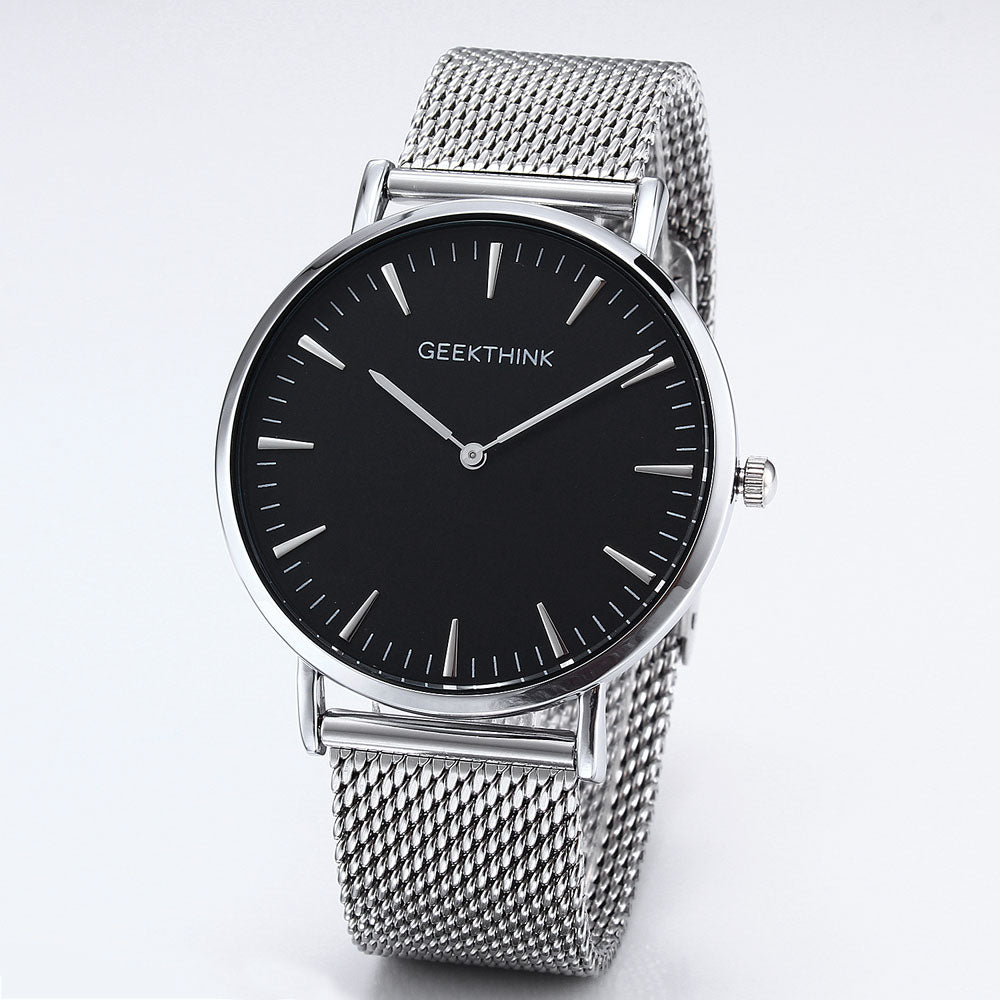 GEEKTHINK Top Luxury Brand Quartz watch men Black Casual Japan Movt stainless steel Mesh strap ultra thin clock male