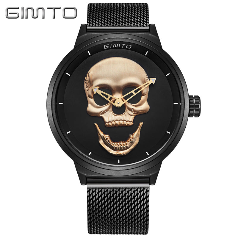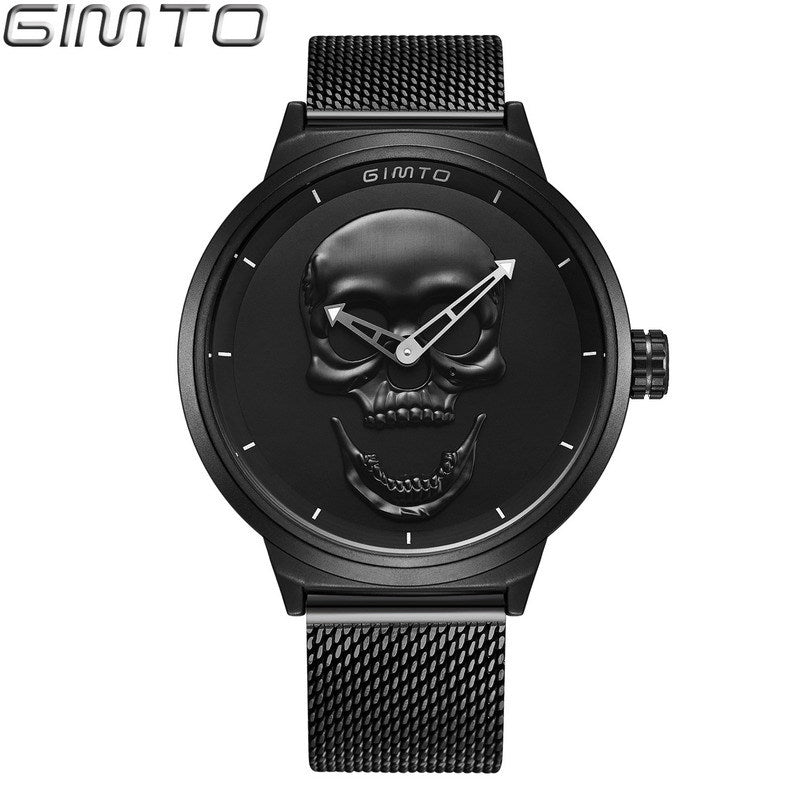 GIMTO Cool Skull Men Watch Luxury Brand Quartz Creative Clock Steel Black Military Female Male Wrist Watches relogio masculino