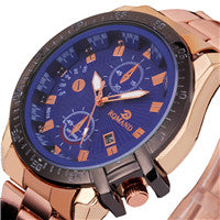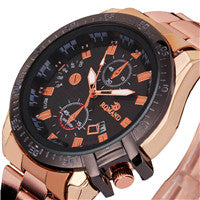 Golden&Rose Gold Luxury Mens Black Dial Gold Stainless Steel Calendar Date Saat Quartz Analog Wrist Watch Montre Homme