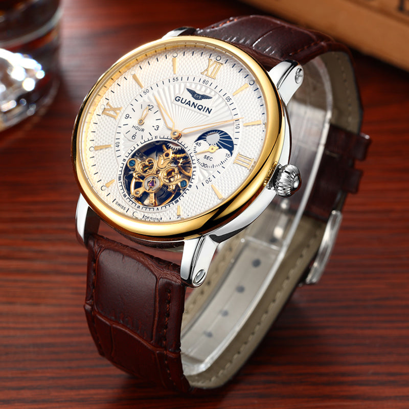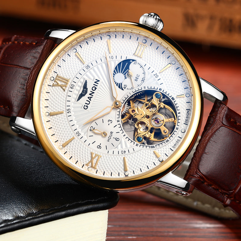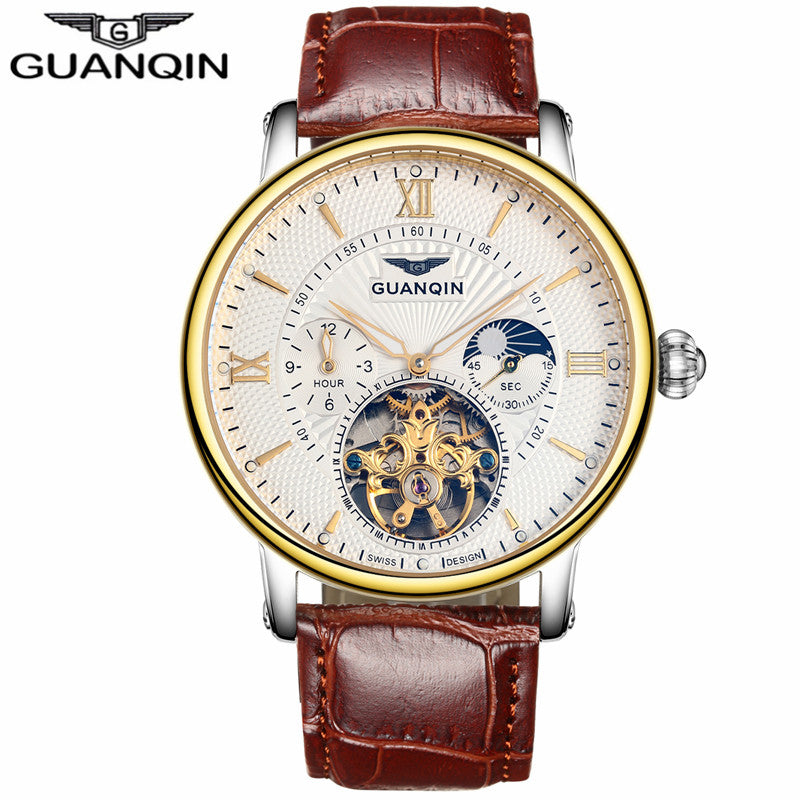 GUANQIN Mens Watches Top Brand Luxury Tourbillon Automatic Mechanical Watch Men Casual Fashion Leather Strap Skeleton Wristwatch