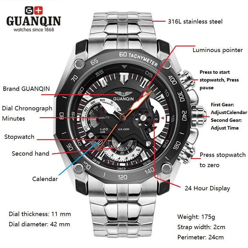 GUANQIN Watch Men 2018 Chronograph Luxury Watches Top Brand Mens Wristwatches Quartz Stainless Steel Watch relogio masculino