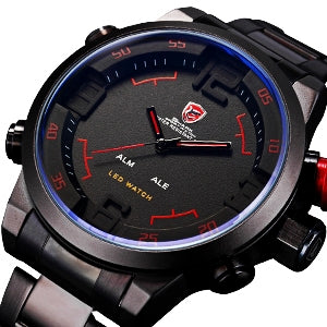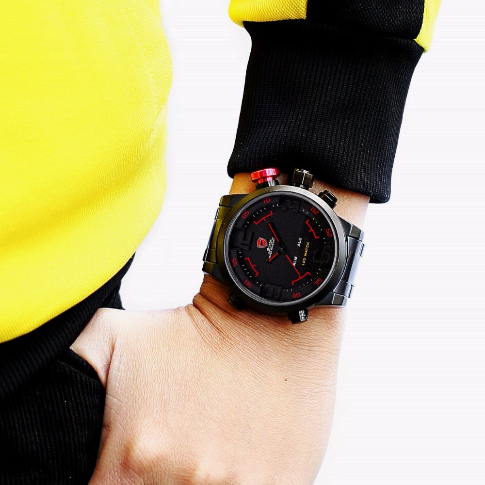 Gulper SHARK Sport Watch Digital LED Men Top Brand Luxury Black Red Calendar Steel Band Wrist Quartz Watches Reloj Hombre /SH105