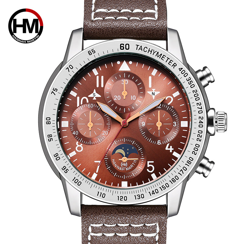 Hannah Martin 2018 New Sport Watches for Men Large Pilot Dress Wrist Watch Fashion Leather Band Quartz Wristwatches Dropshipping