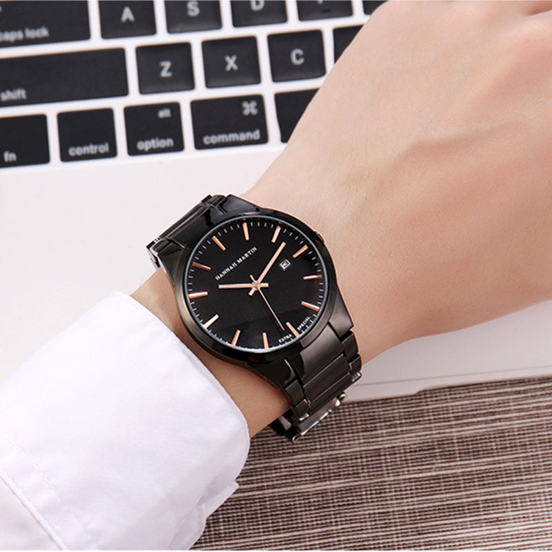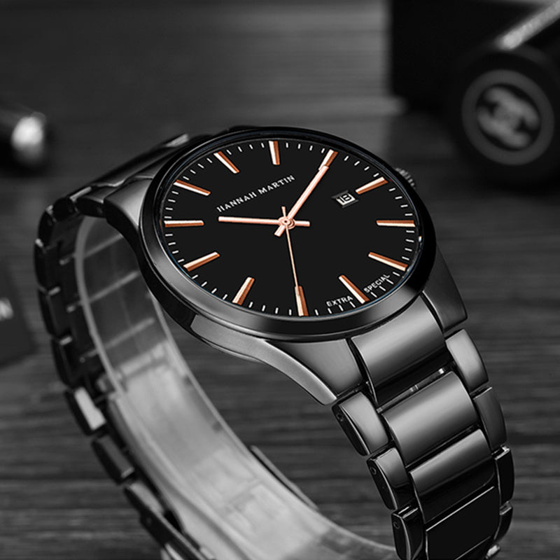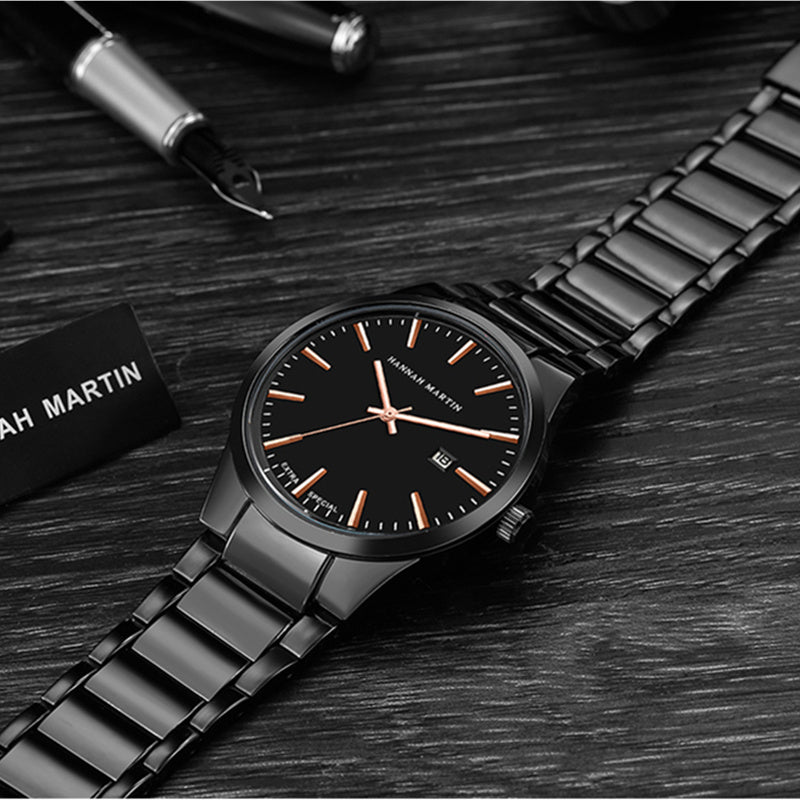 Hannah Martin Mens Watches Top Brand Luxury Men's Watch Men Watch Auto Date Watches Waterproof Full Steel Clock erkek kol saati
