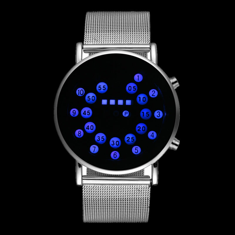 Hot Sale Fashion Binary Watch Men Digital Watch Stainless Steel Unique LED Watches Men's Watch Clock saat relojes reloj hombre