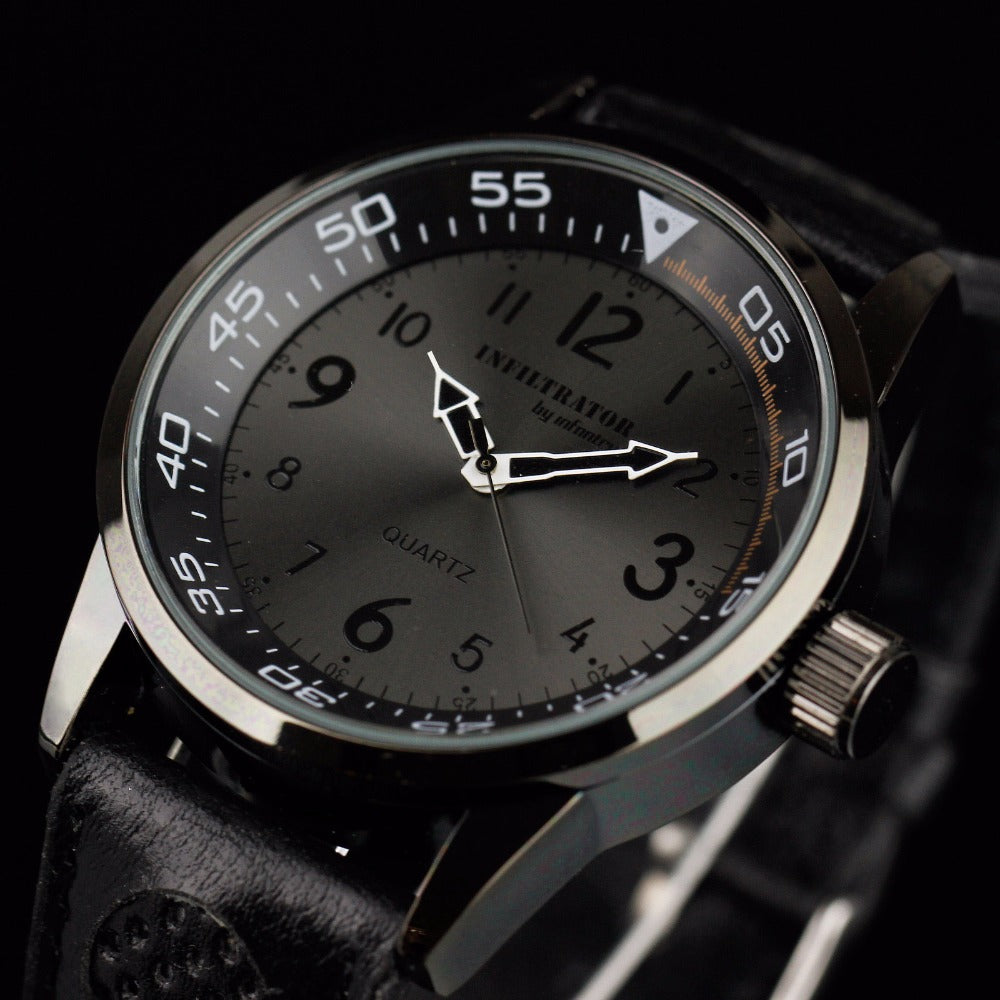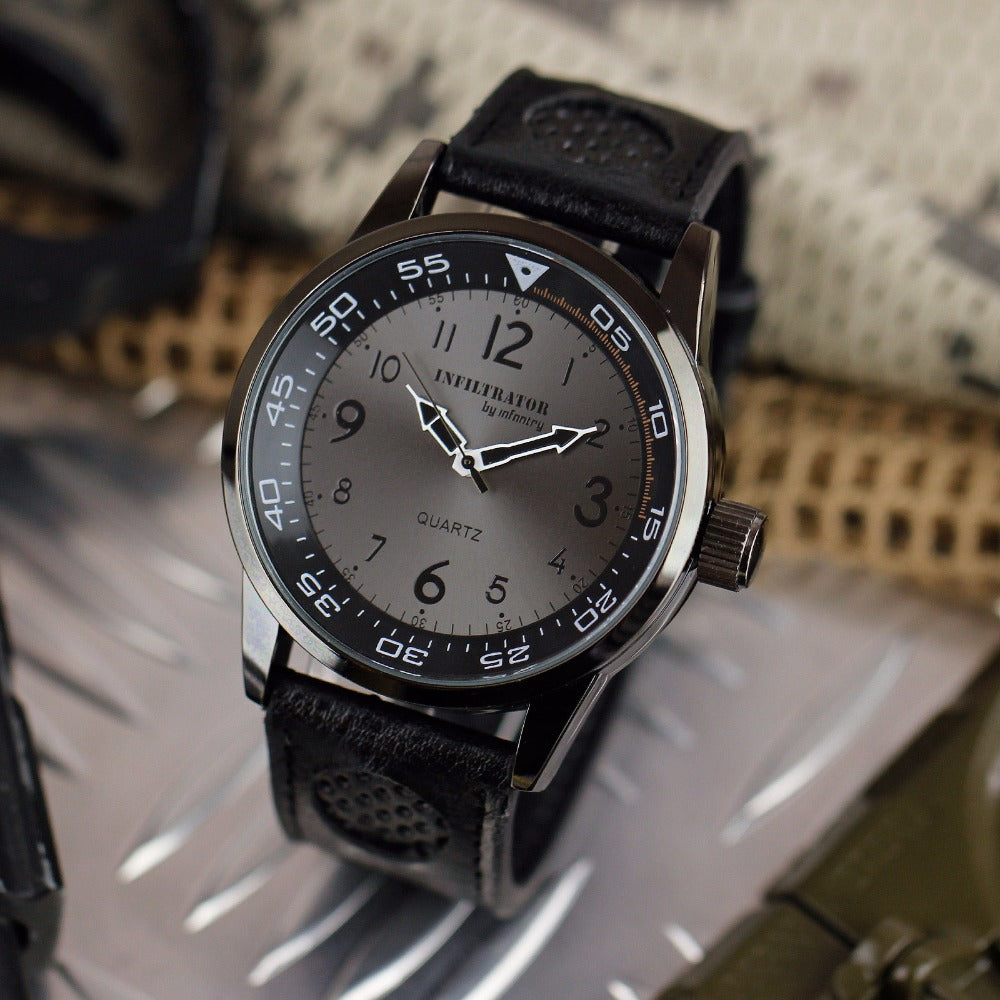 INFANTRY Mens Analog Quartz Wrist Watch Top Brand Luxury Black Leather Band Army Sports Watch 12 Hrs Display Relogio Masculino