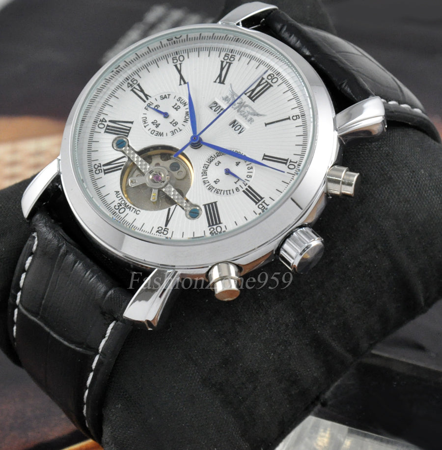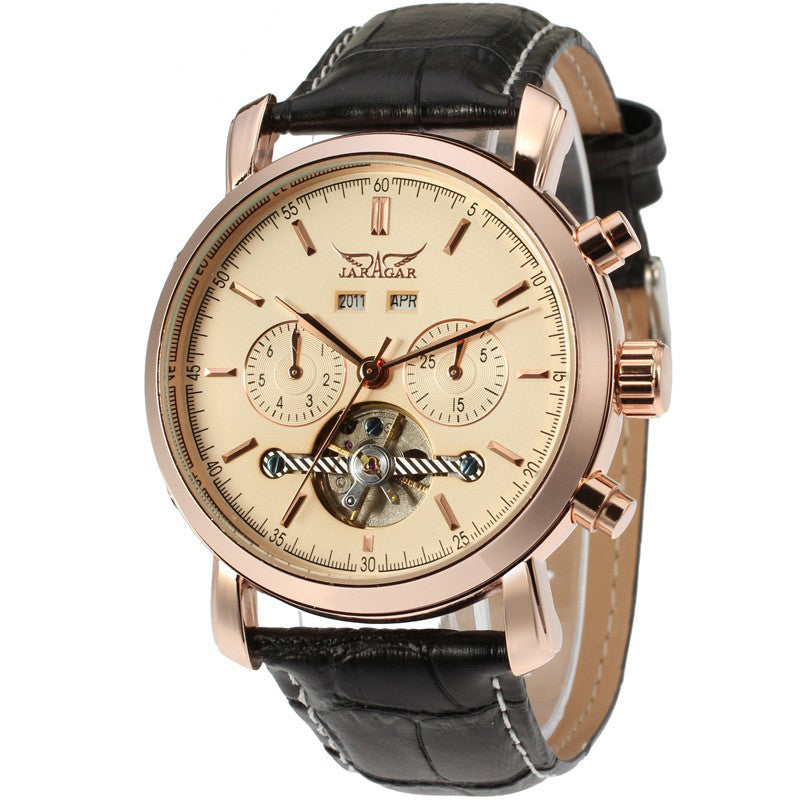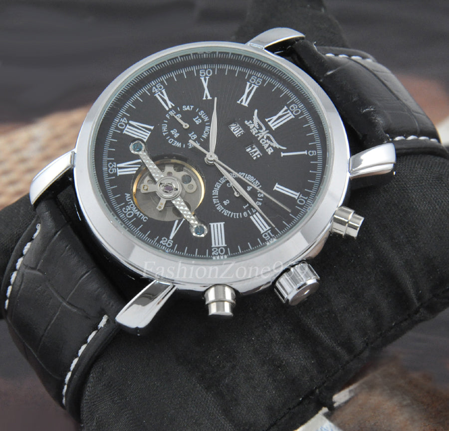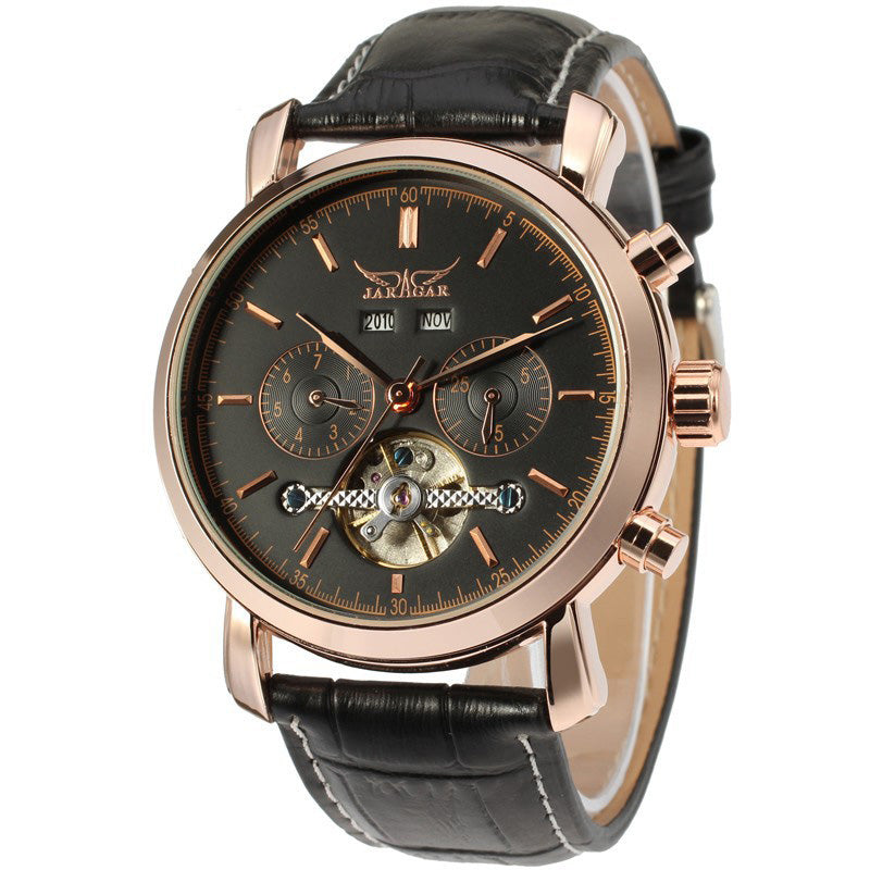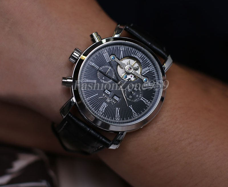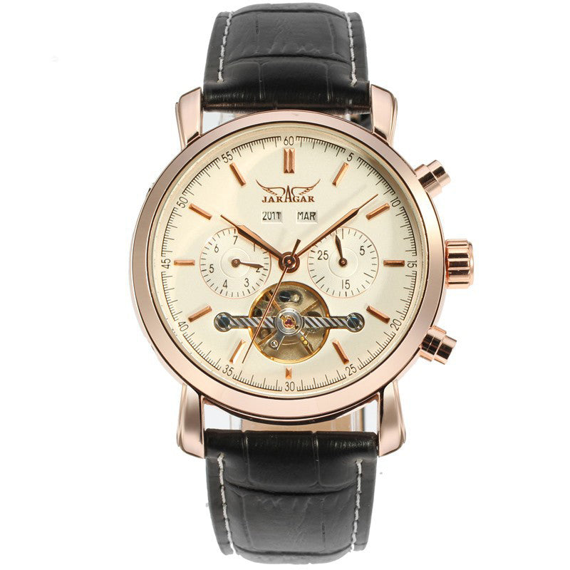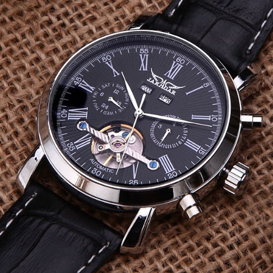 Jaragar luxury mechanical automatic brand watch leather strap date&day AUTO Flywheel Tourbillon Mens Wristwatch relogio