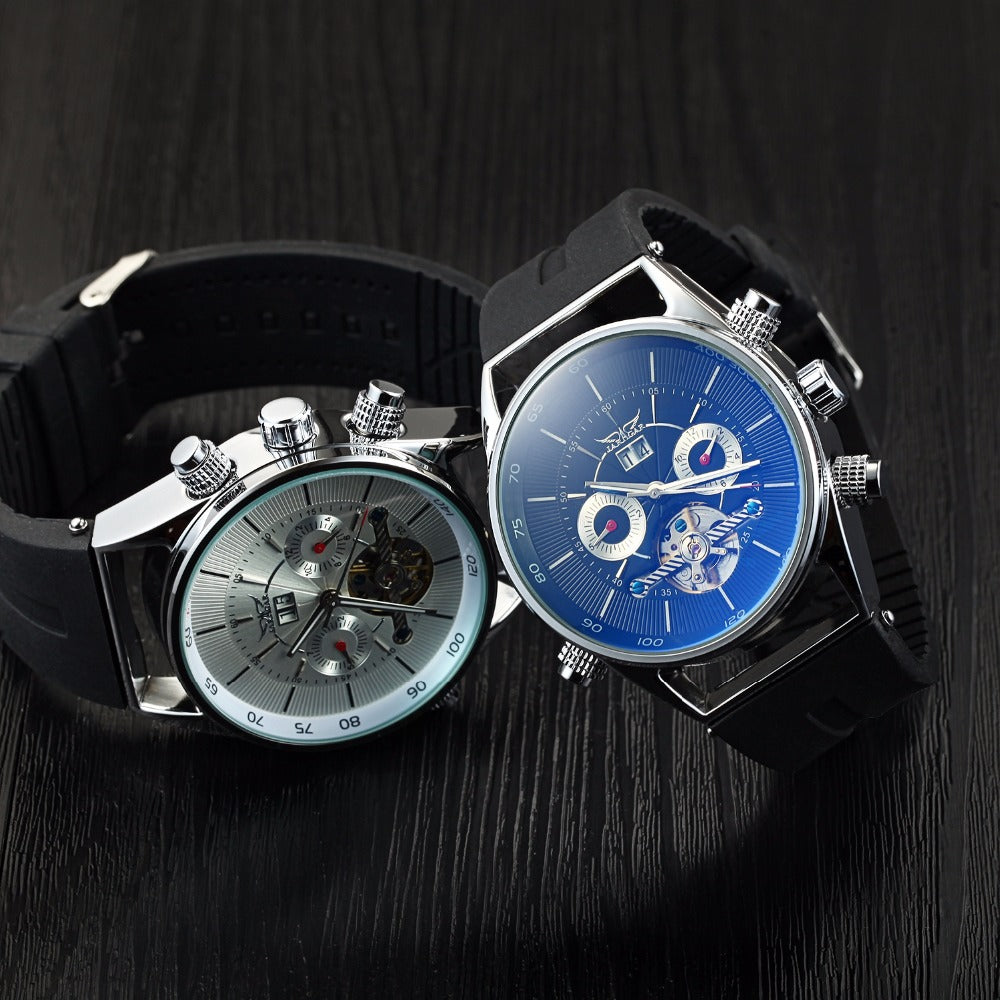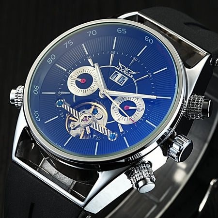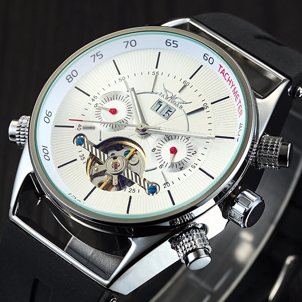 Jaragar Mens Watches Top Brand Luxury Automatic Fashion Sport Watch Shark Lines Design Rubber Band Tourbillion Display Calendar