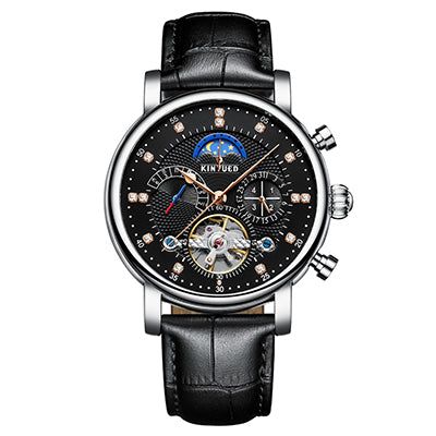 KINYUED Moon Phase Top Brand Mens Mechanical Watches Automatic Tourbillon Skeleton Watch Men Calendar Relogio Masculino dropship