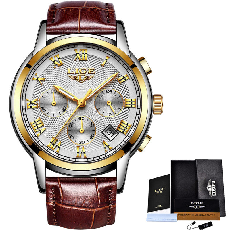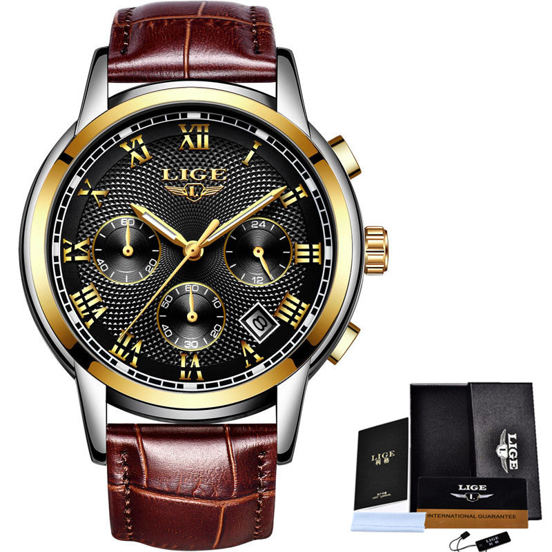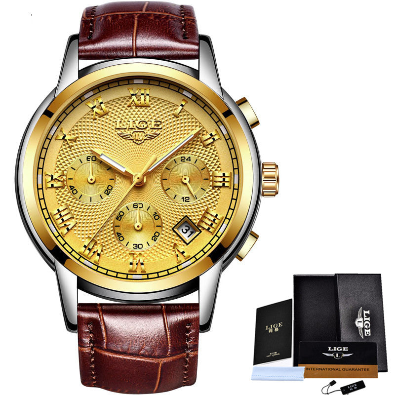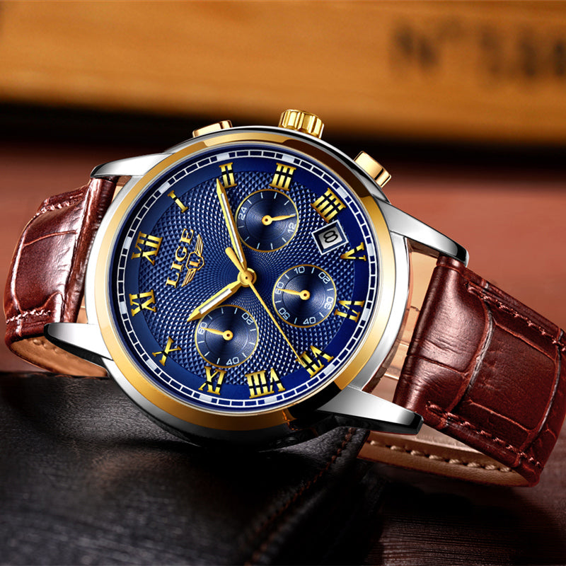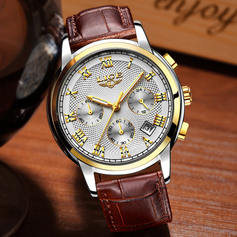 LIGE Gold Watch Men Fashion Quartz Leather Clock Mens Watches Top Brand Luxury Waterproof Business Sport Watch Relogio Masculino