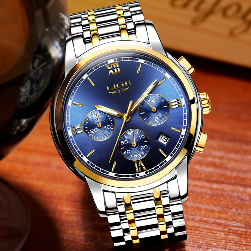 LIGE Luxury Brand Watches Men Fashion Sport Military Quartz Watch Men Full Steel Business Waterproof Clock Man Relogio Masculino